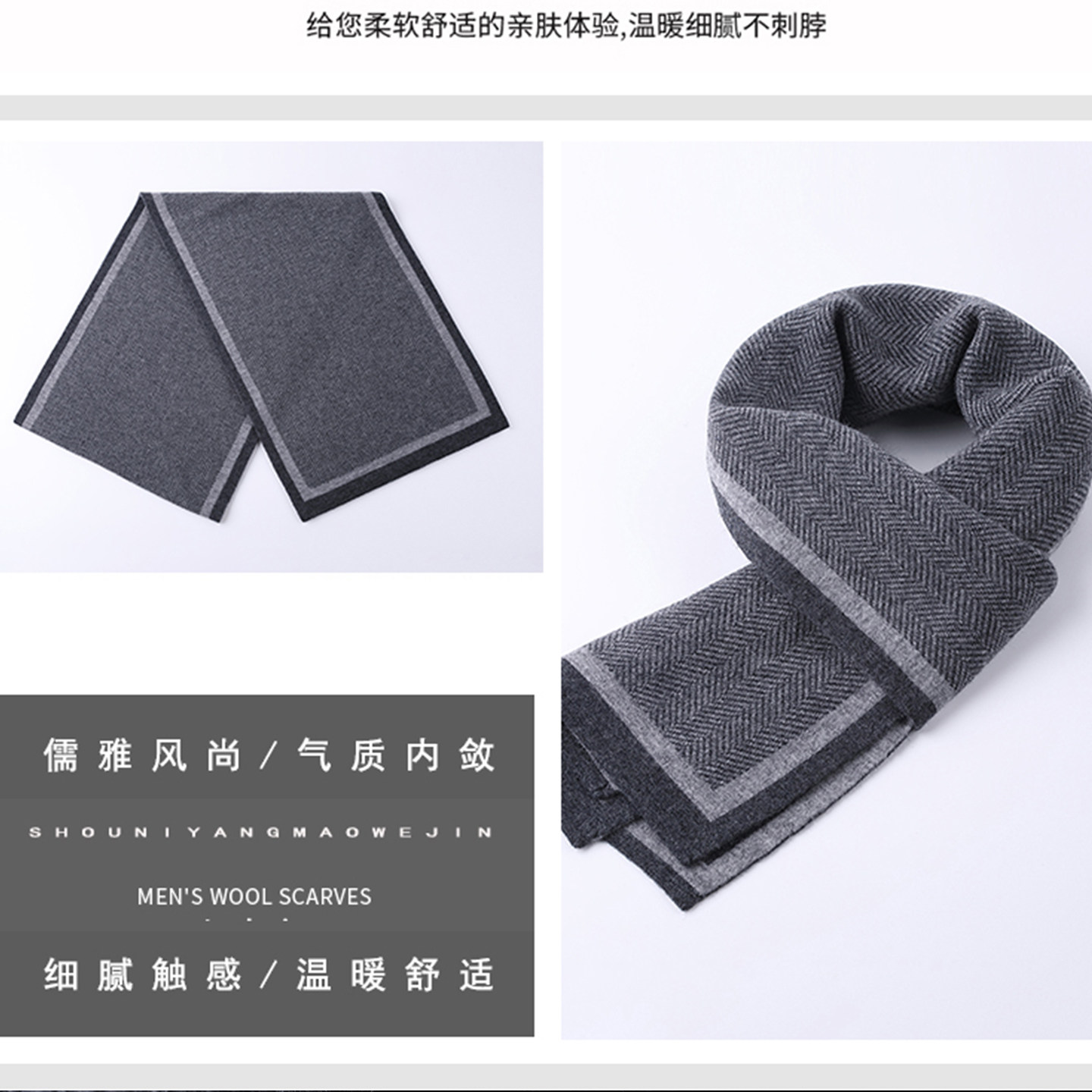 100%纯羊毛围巾男秋冬季韩版百搭简约保暖加厚高档男士围巾礼盒装