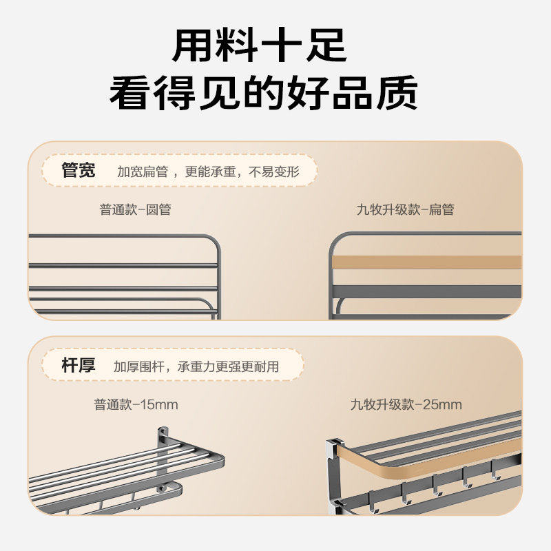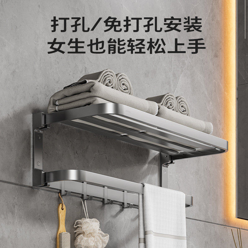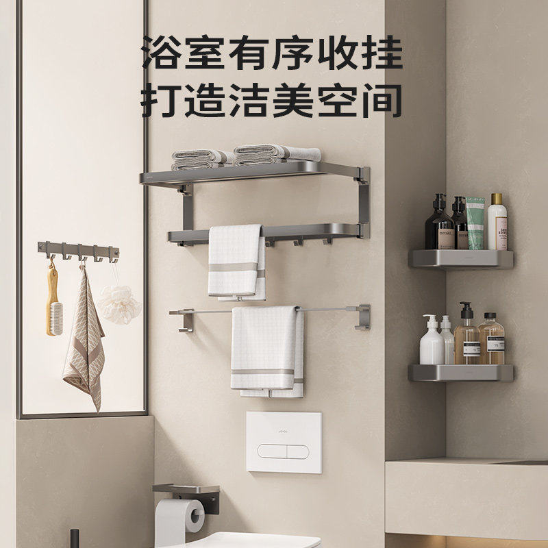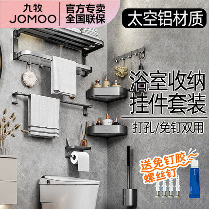 九牧卫浴毛巾架太空铝免打孔卫生间浴室置物架浴巾架五金挂件套装