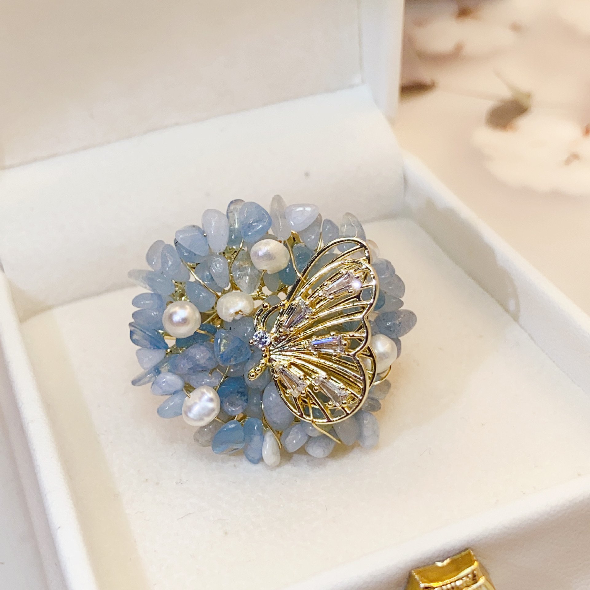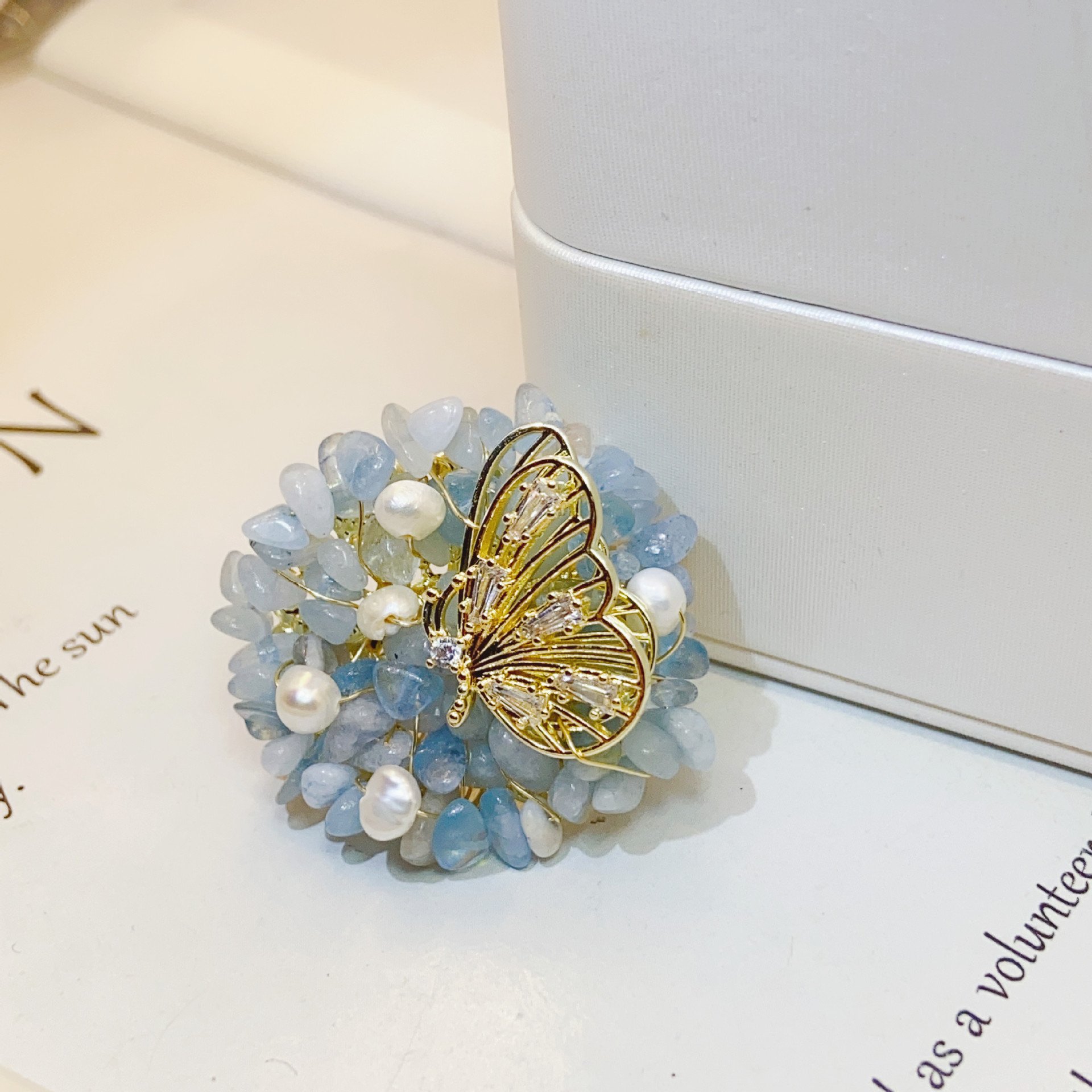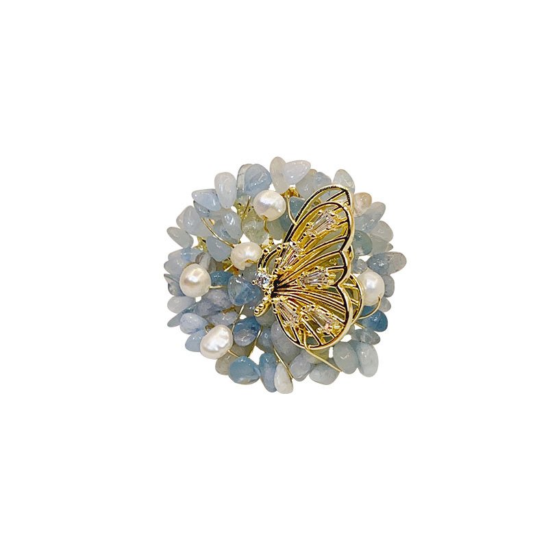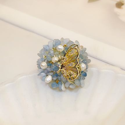 天然海蓝宝碎石夏季胸针高档女清新气质别针装饰时尚百搭胸花配饰