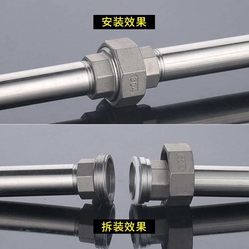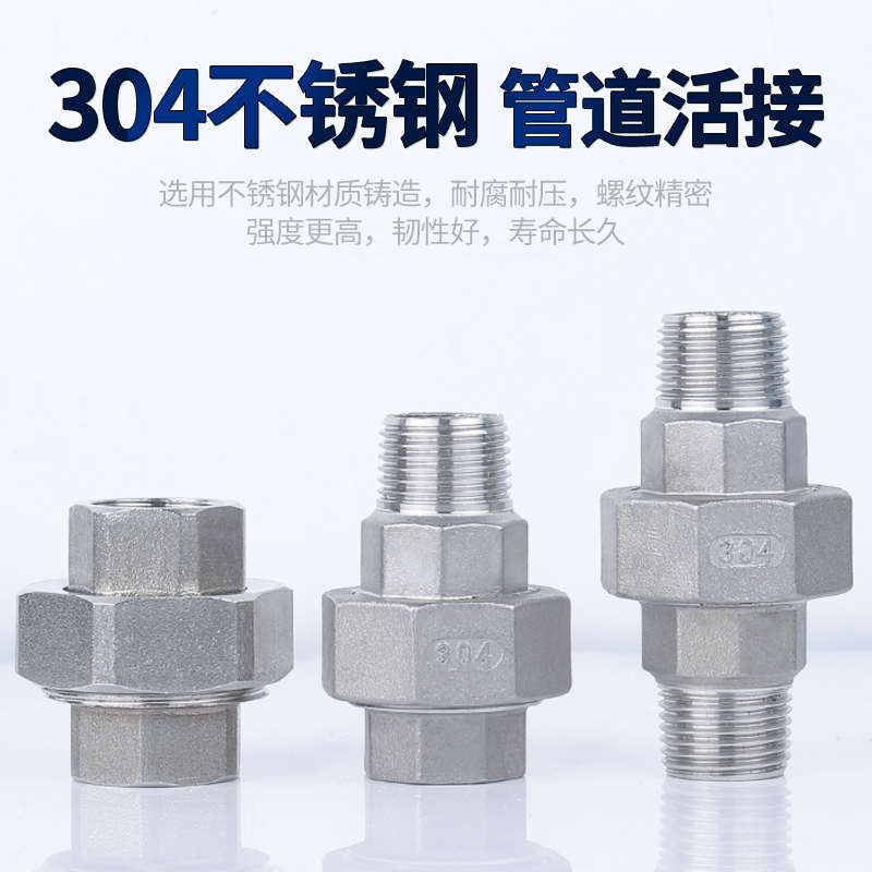 顶建 304不锈钢活接头内外丝活直接内外牙丝口4分6分1寸管道油任