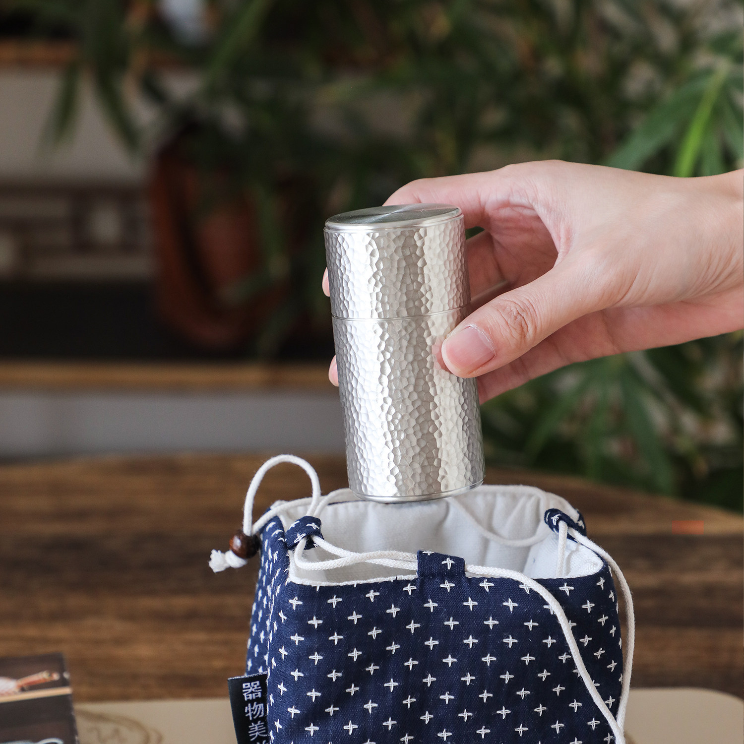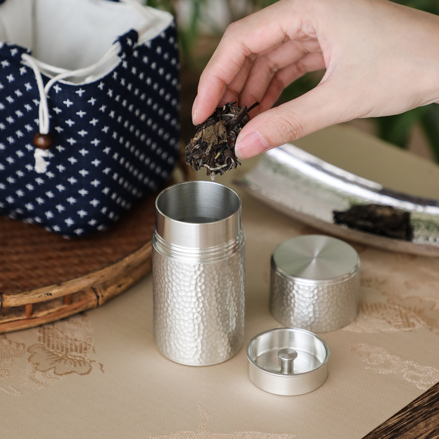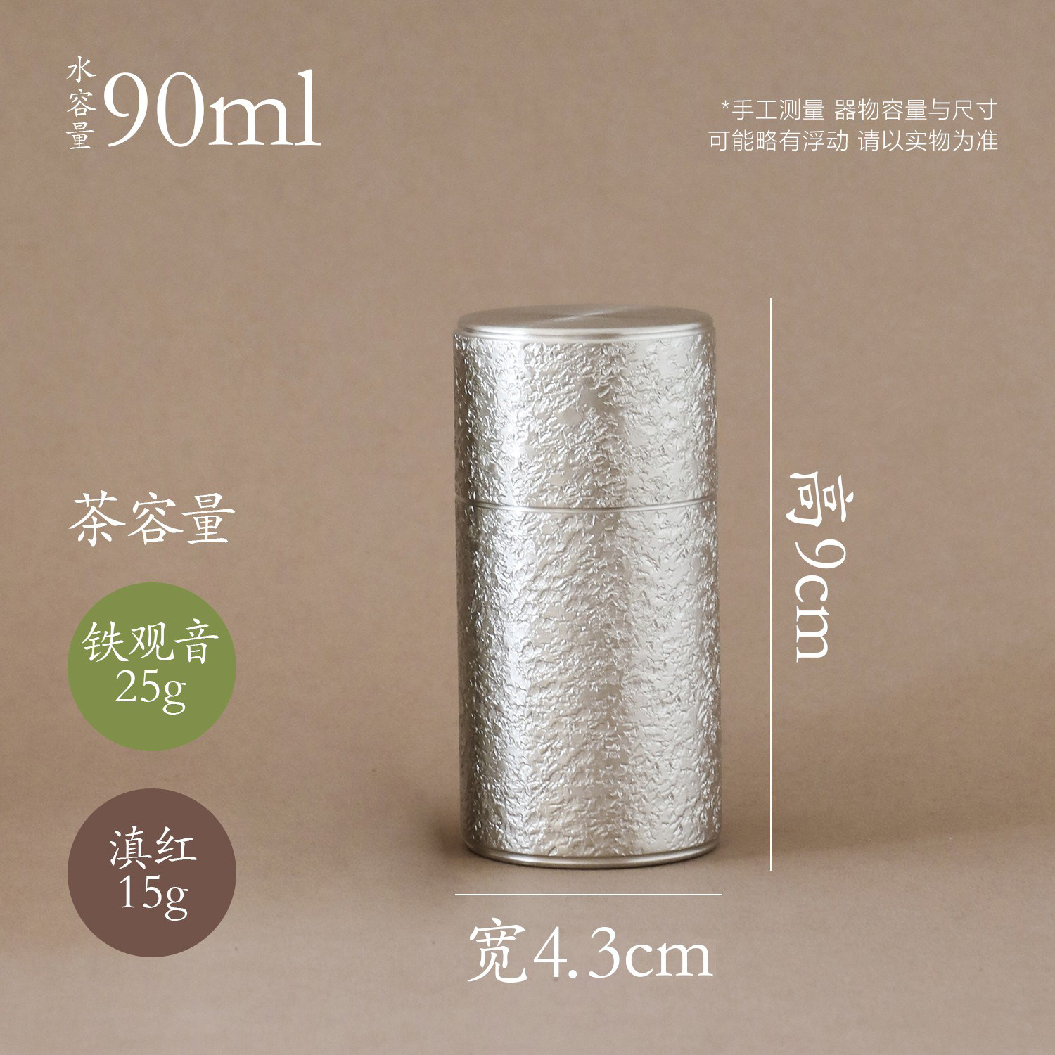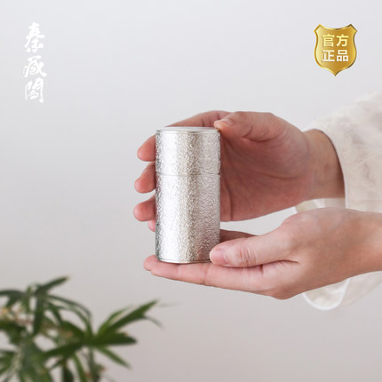 秦藏阁二号岩纹纯锡茶叶罐双盖手工复古中式锡罐茶仓金属便携90ml