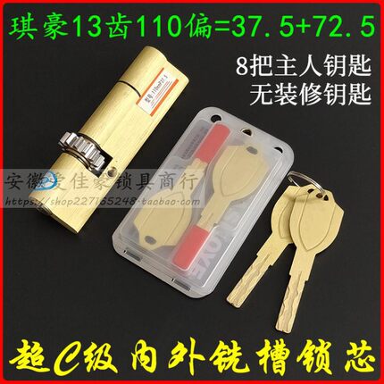 超C级叶片13齿轮正孔锁芯 名家琪豪金和美防盗门 110mm=37.5+72.5