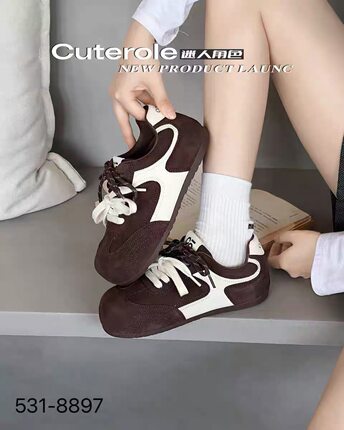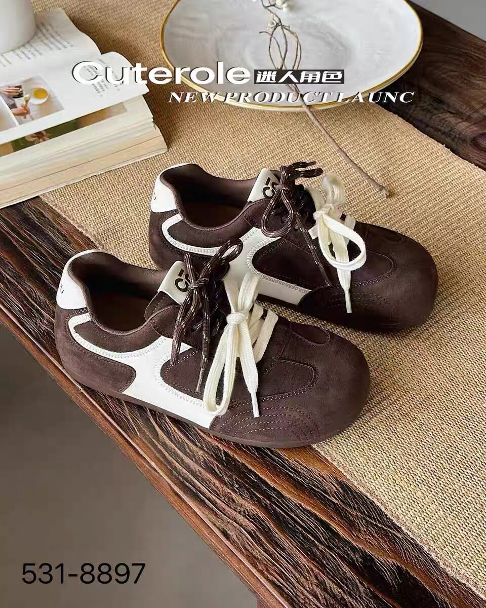 迷人角色专柜正品2025新款商场同款牛反皮圆头系带德训鞋女单鞋