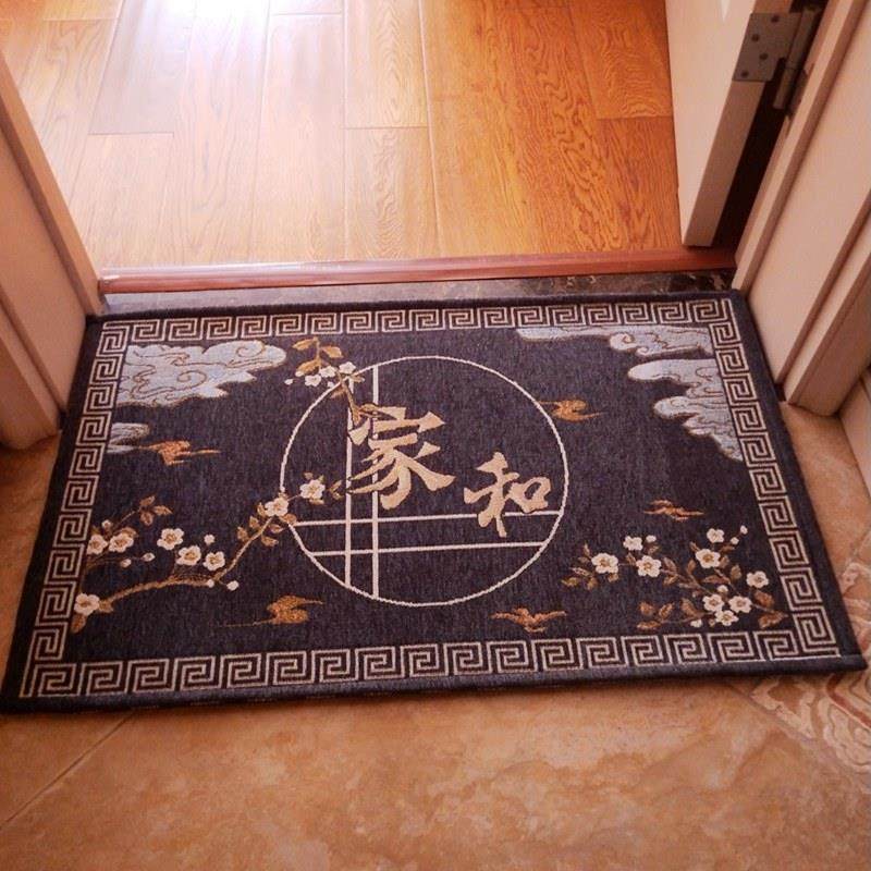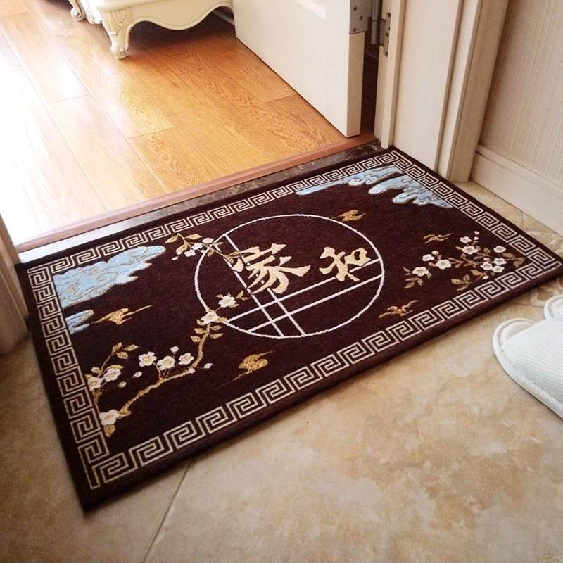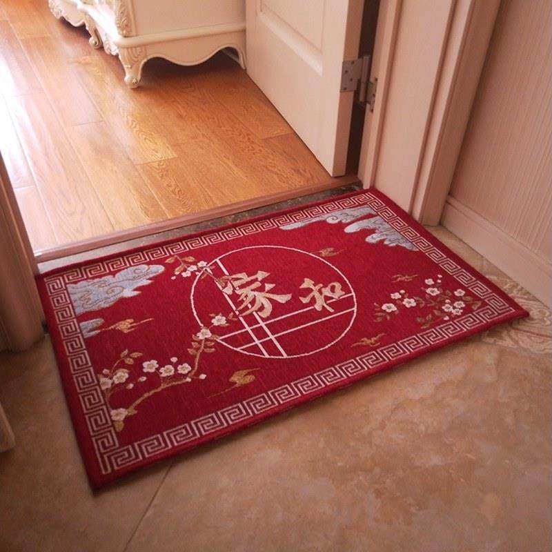 新中式家和红色门厅脚垫蹭灰地垫可水洗布艺提花地毯新房入户门垫