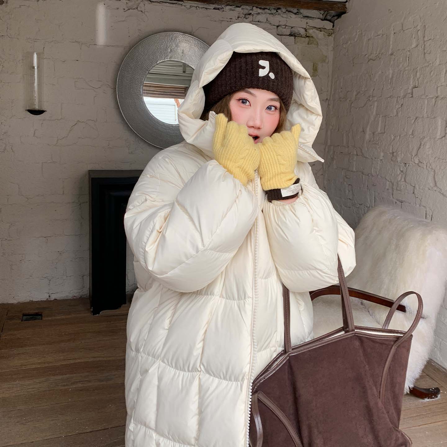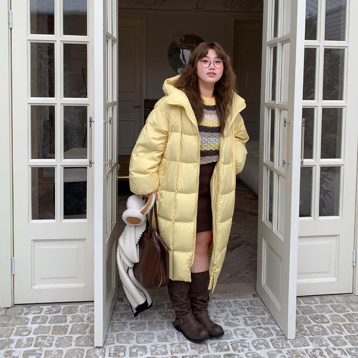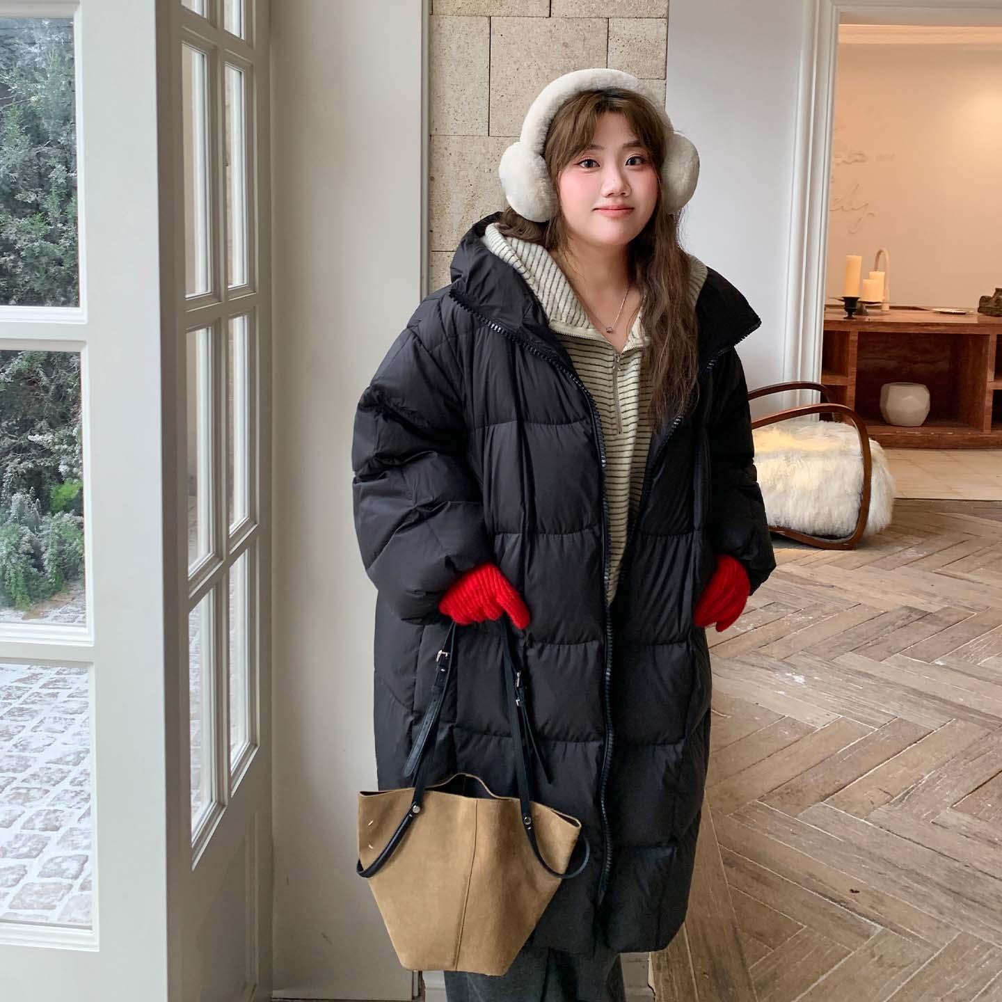 YUZI重磅长款羽绒服白鸭绒大码
