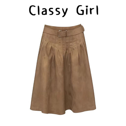 Classy girl a字半身裙女2026新款春秋包臀中长款美拉德麂皮绒裙