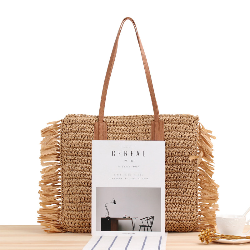 店长推荐新款流苏单肩草编包穗穗纸质编织包夏日沙滩包时尚女包