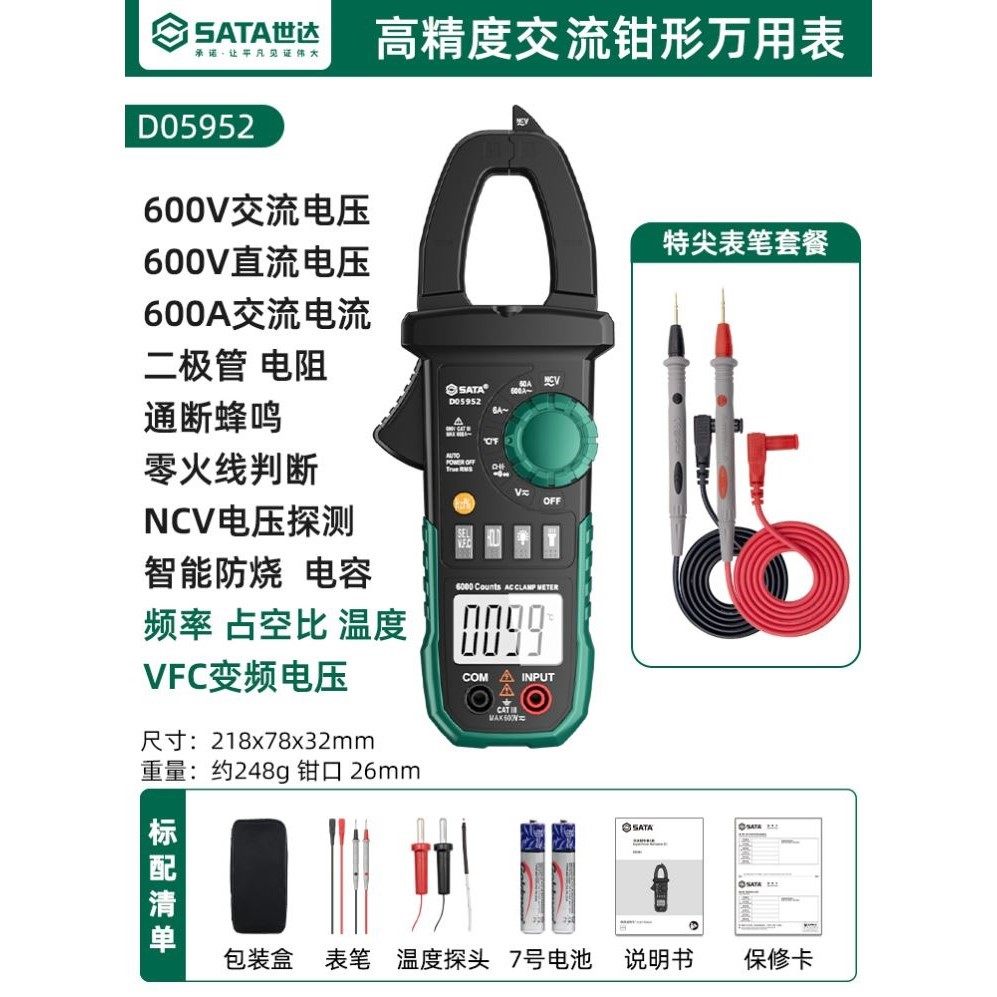 世达数字钳形表钳型万用表高精度直流钳流表智能万能表电流表钳表