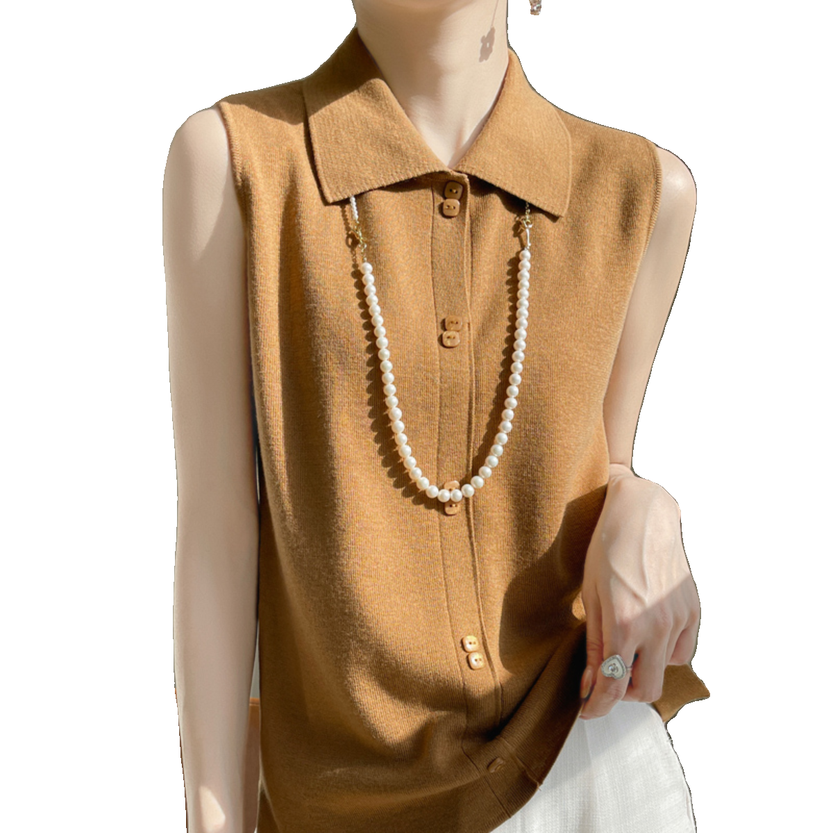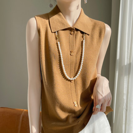 纽扣翻领百搭针织无袖背心