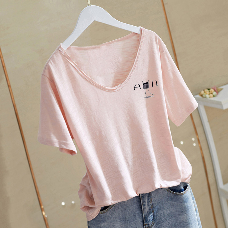 竹节棉纯棉短袖T恤女2025年夏季新款白色V领设计感上衣内搭显瘦上