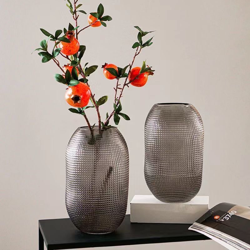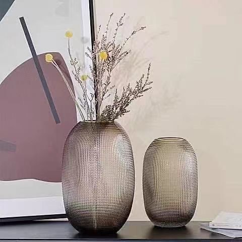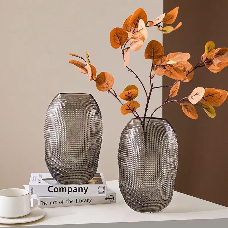 波点玻璃花瓶复古大肚花瓶轻奢高级插花中式干花花瓶透明玄关客厅