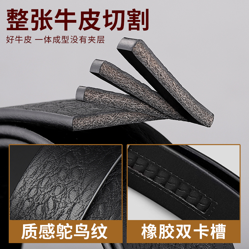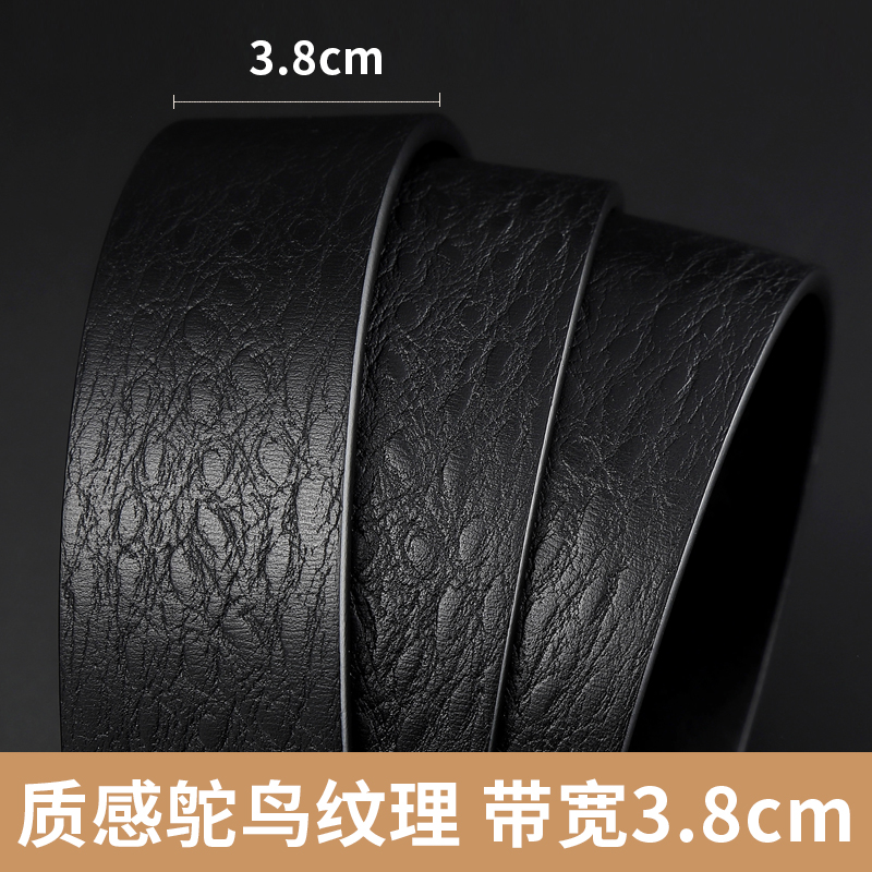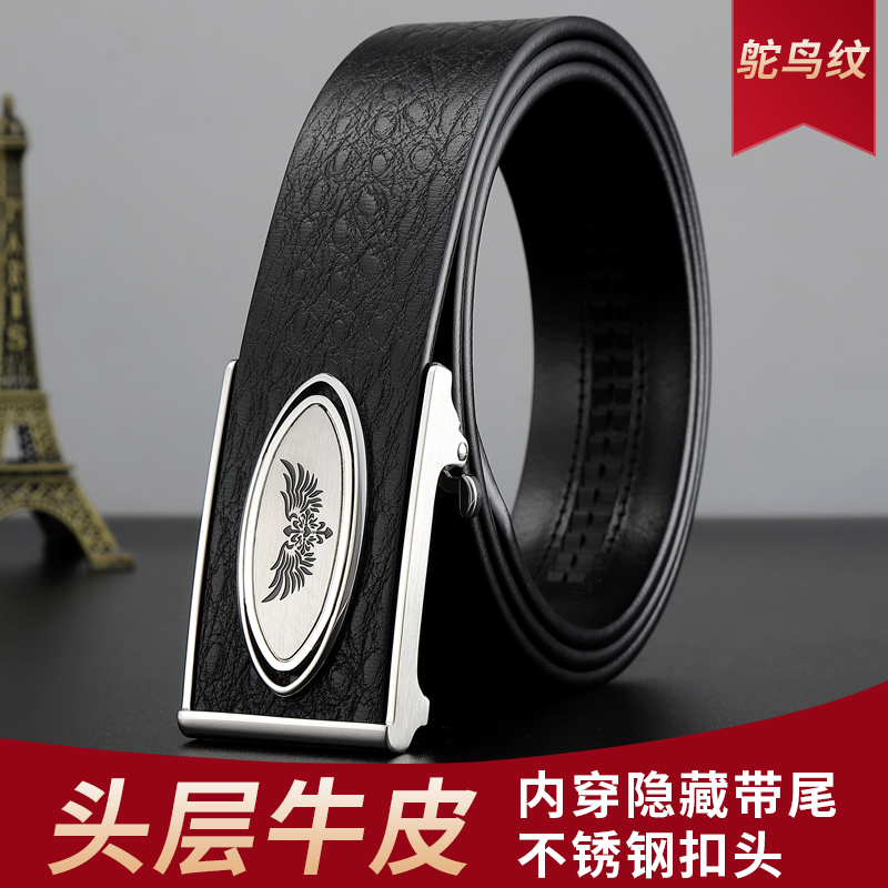 3.8不锈钢男士内穿自动扣皮带头层牛皮鸵鸟纹男真皮高档商务裤带