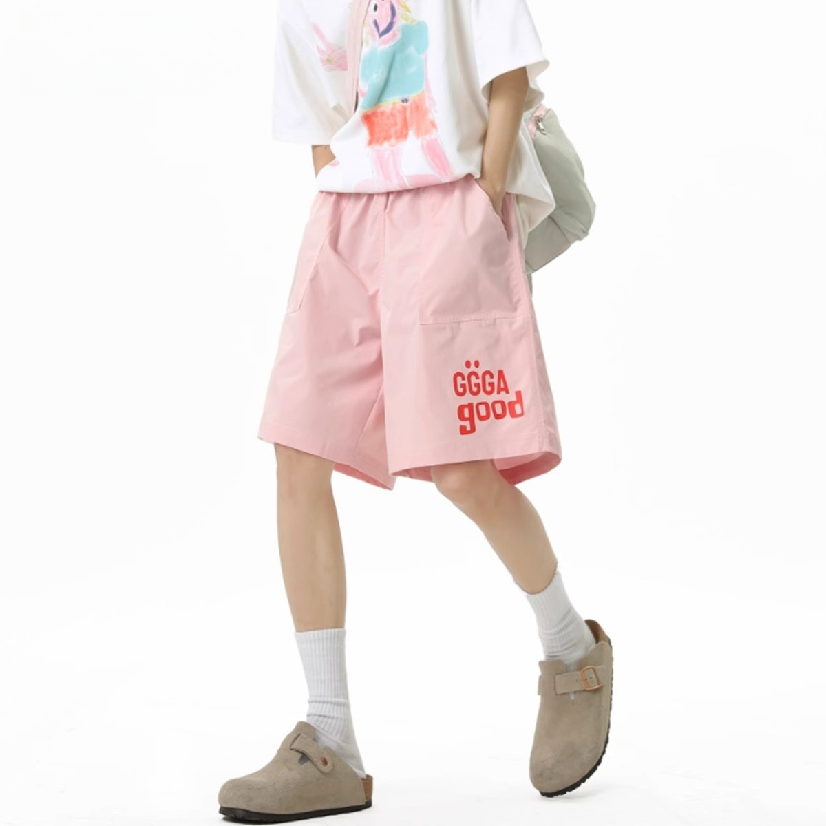 字母印花2025男女五分裤阔腿夏季宽松沙滩显瘦多巴胺过膝运动短裤