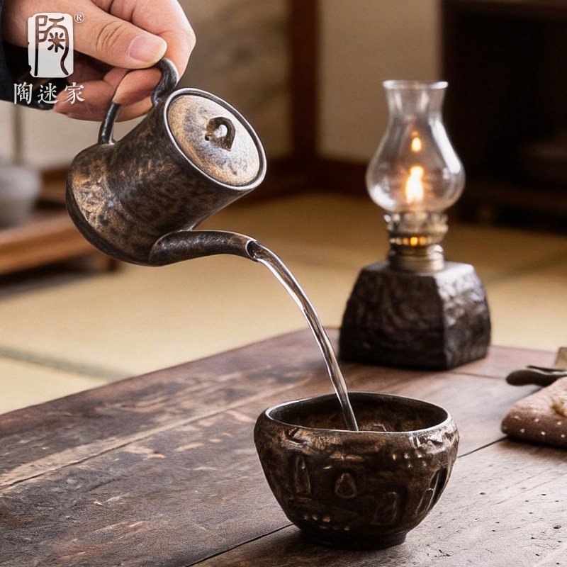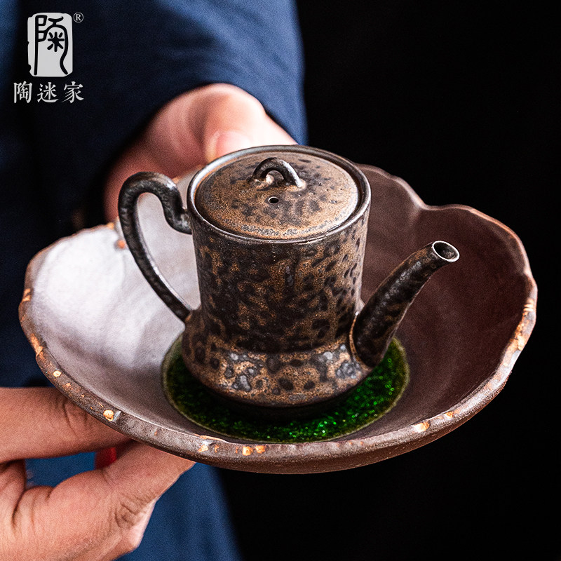 陶迷鎏金铁釉美人壶复古土陶茶壶中式陶瓷泡茶具小容量一人饮单壶