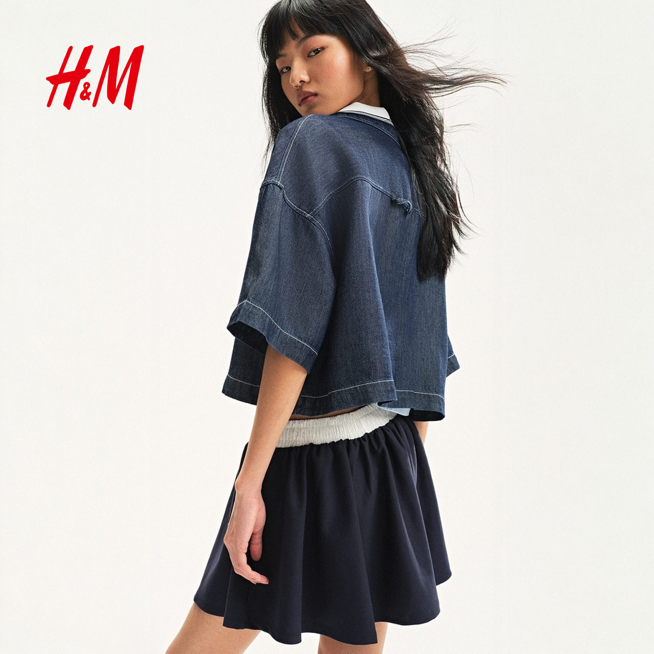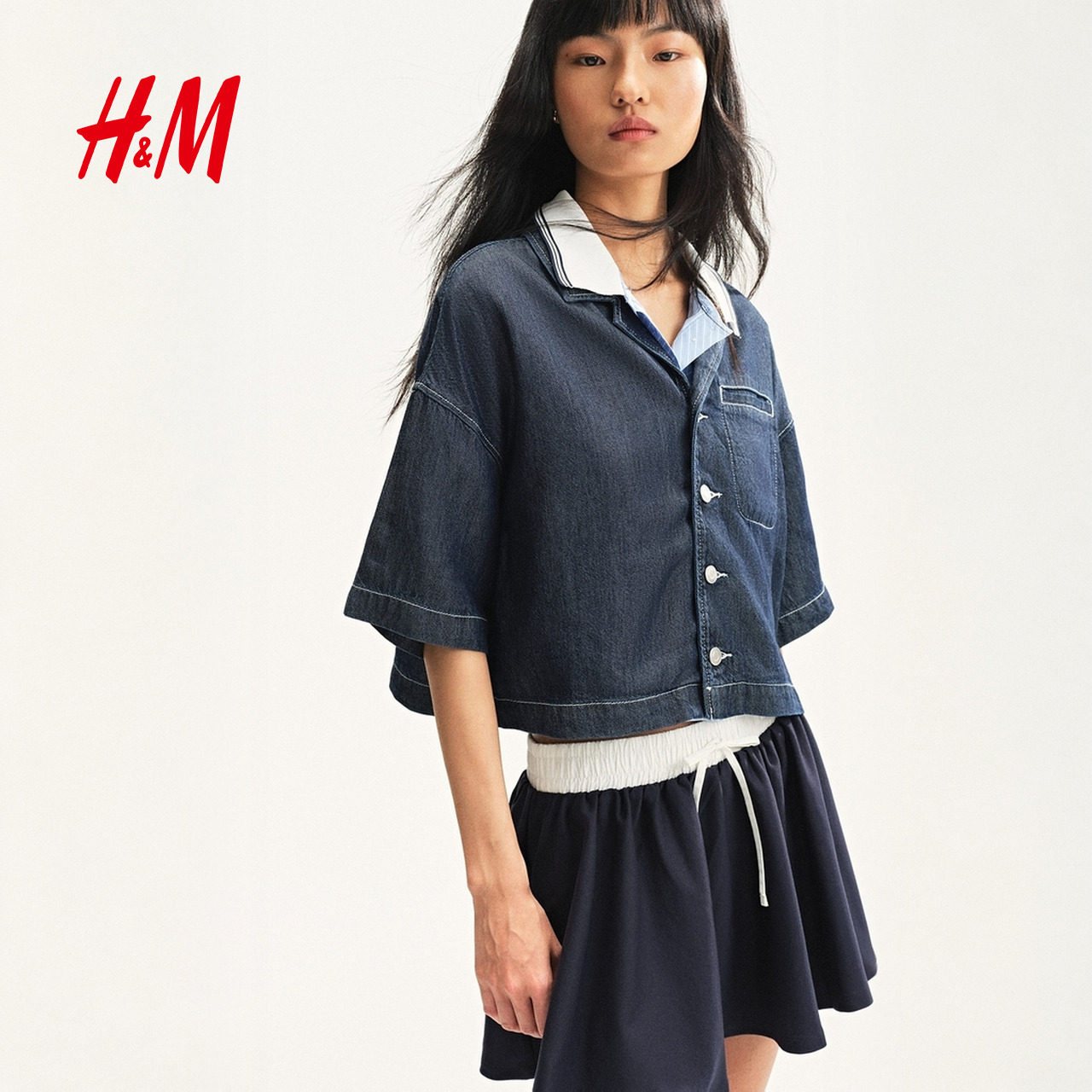 HM女装衬衫春季气质时尚简约柔软通勤牛仔衬衫1300751