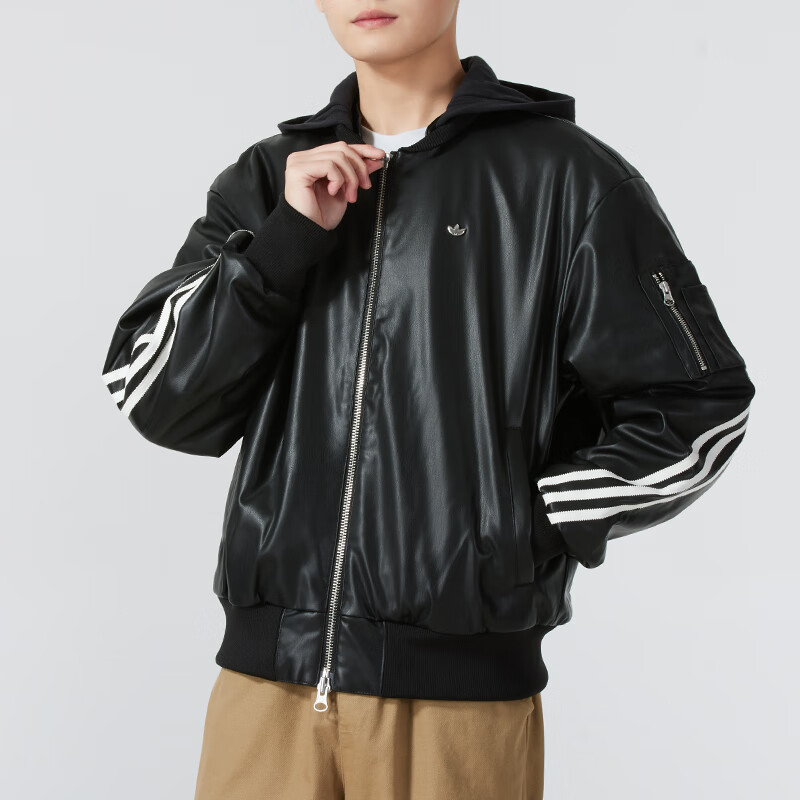 Adidas阿迪达斯三叶草秋冬款男女飞行员运动PU皮质夹克外套JL7556