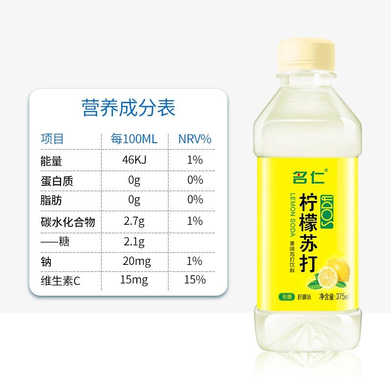 名仁苏打水饮料原味柠檬芦荟玫瑰水蜜桃芒果味无汽整箱375ml*24瓶