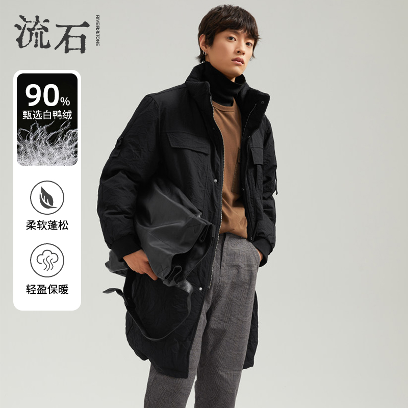 流石男装冬装新款黑色中长款羽绒男士冬季加厚保暖加厚面包服外套