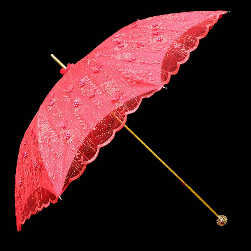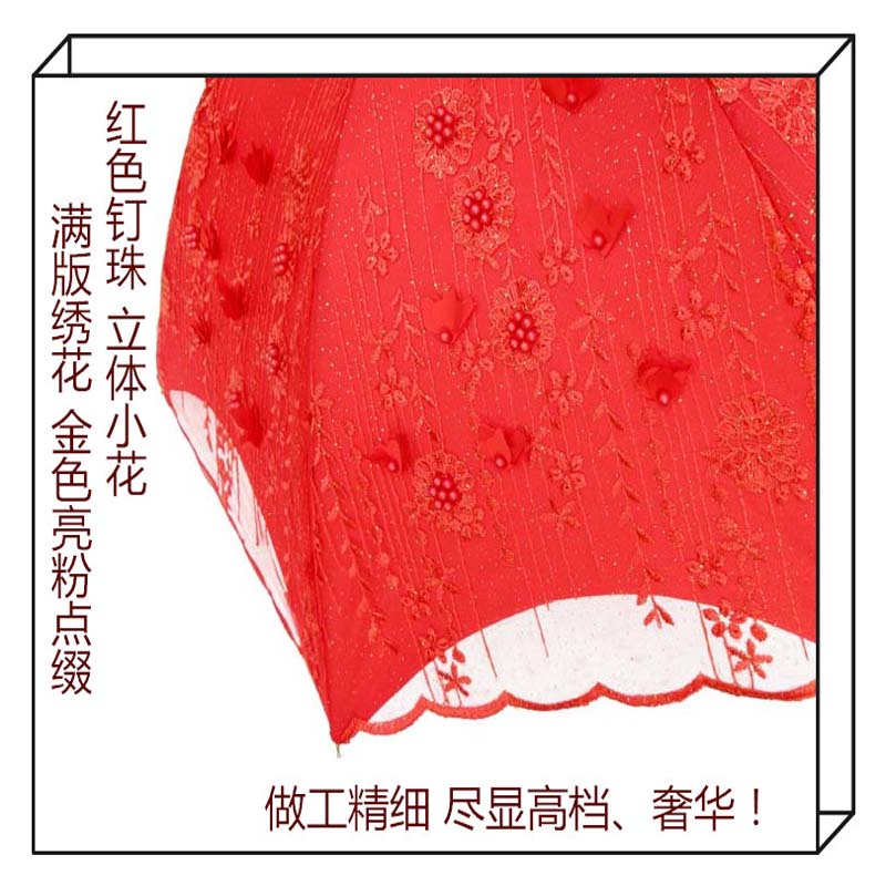 新品结婚红伞蕾丝刺绣长柄伞晴雨两用中式婚礼出嫁红色喜庆新娘伞