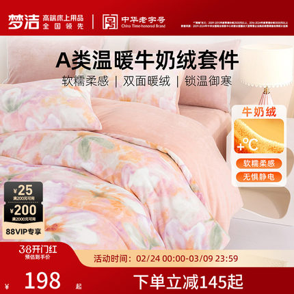 梦洁牛奶绒床上三四件套加绒2026新款床单被套冬法兰绒珊瑚绒床品