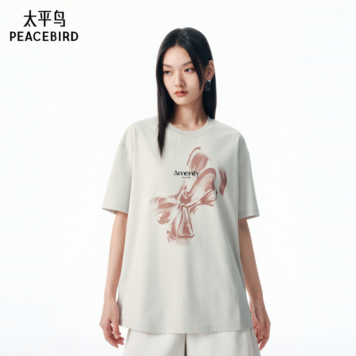 【商场同款】凉感抗菌太平鸟蝴蝶结纹样秋季新短袖T恤A1CNF3P38