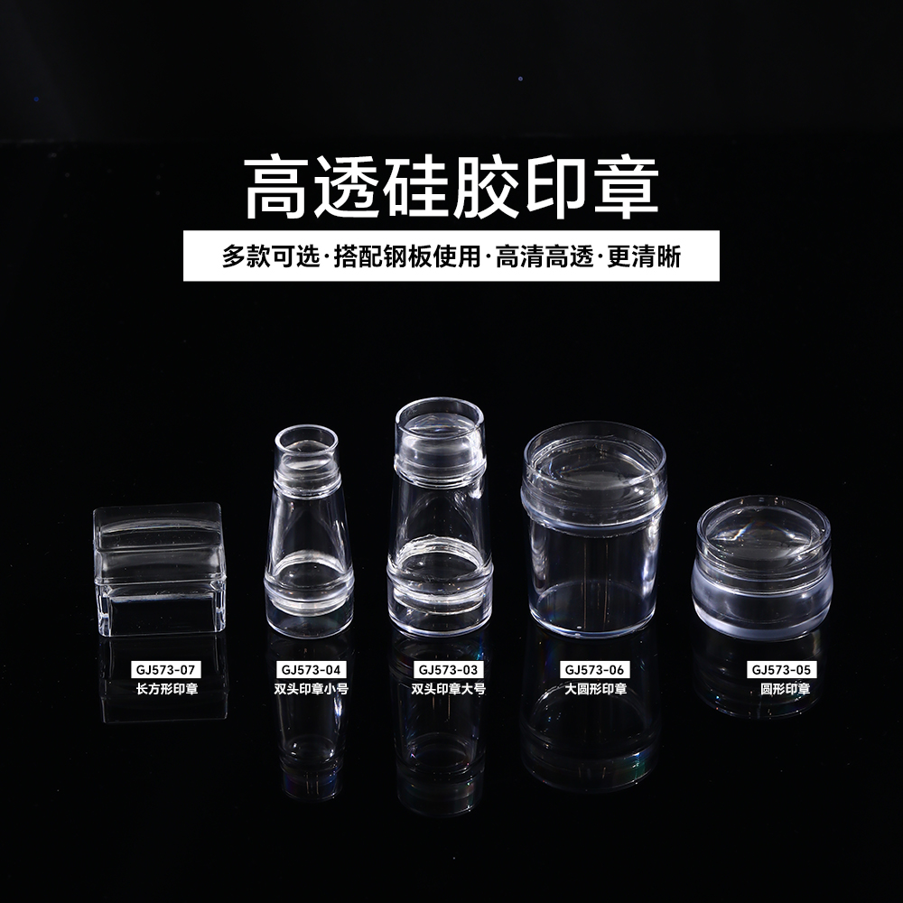 新款高透硅胶印章美甲工具透明多功能双头转印钢板印花专用硅胶头