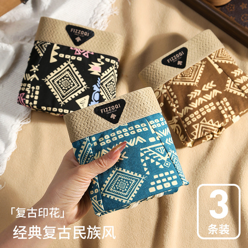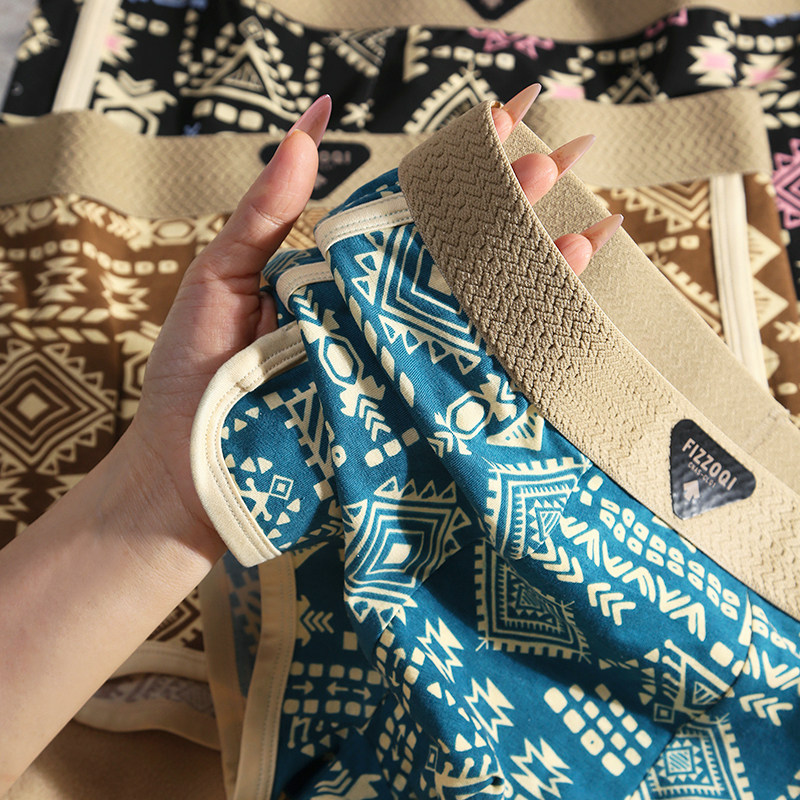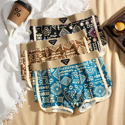 美式复古男士内裤纯棉10A抑菌平角裤印花透气四角裤新款潮流短裤