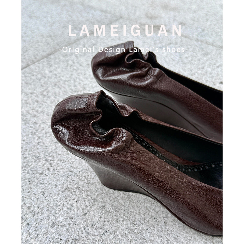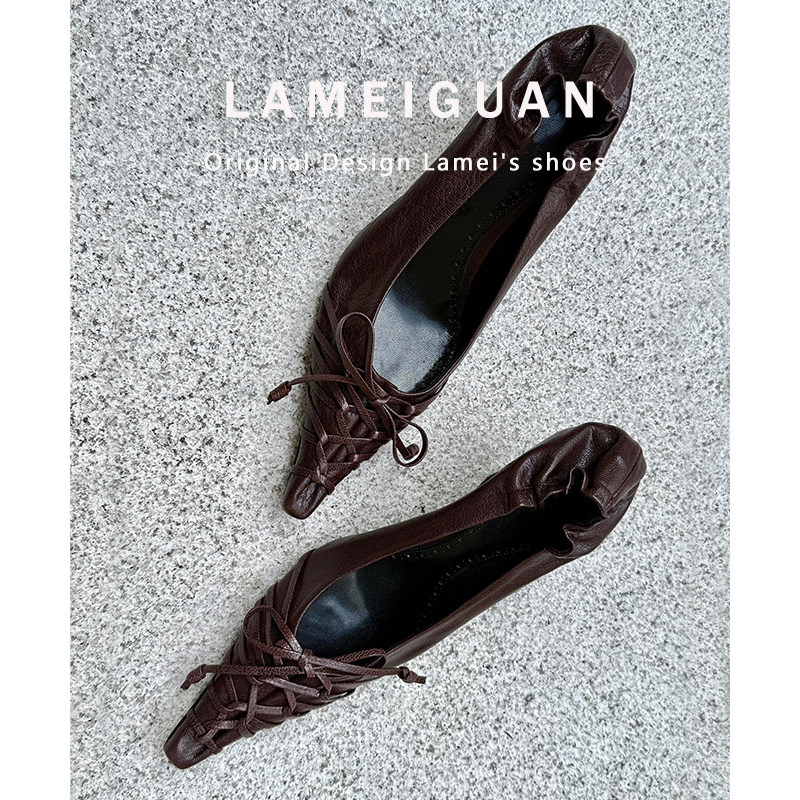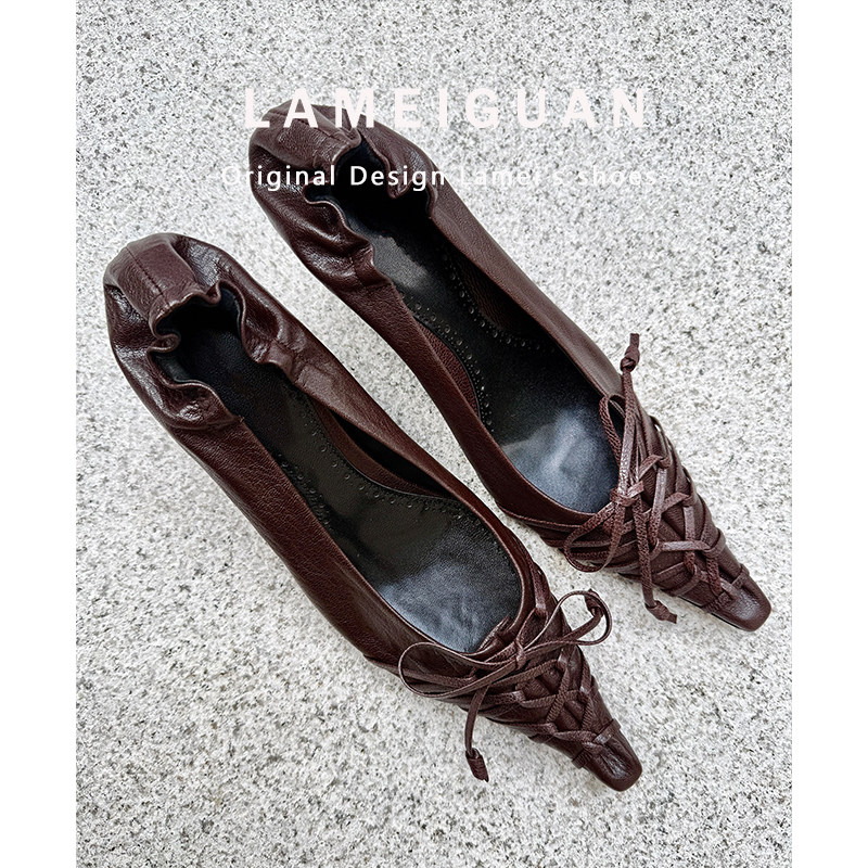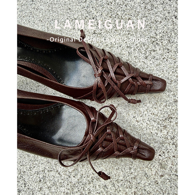 咖色复古尖头系带坡跟单鞋女2026春季新款绝美气质浅口中古高跟鞋