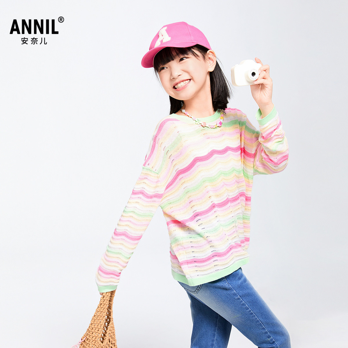 【商场同款】安奈儿童装女童毛衣针织衫春新款纯棉AG514533