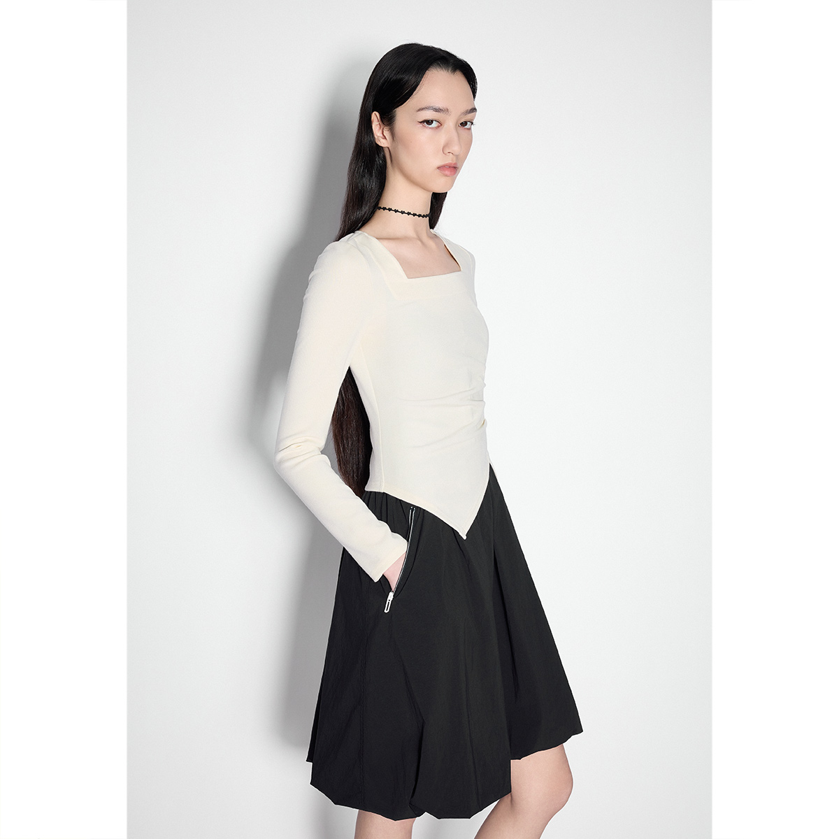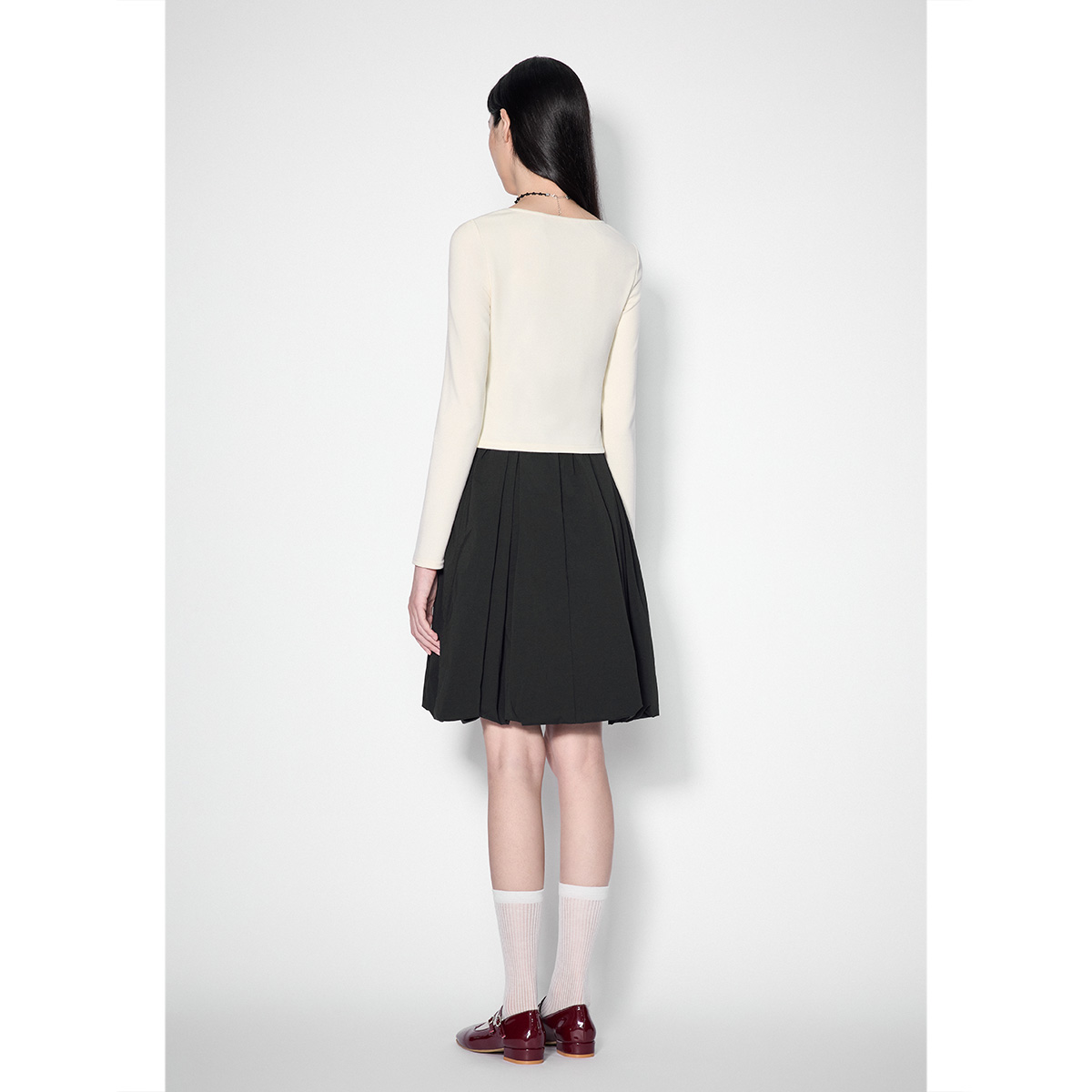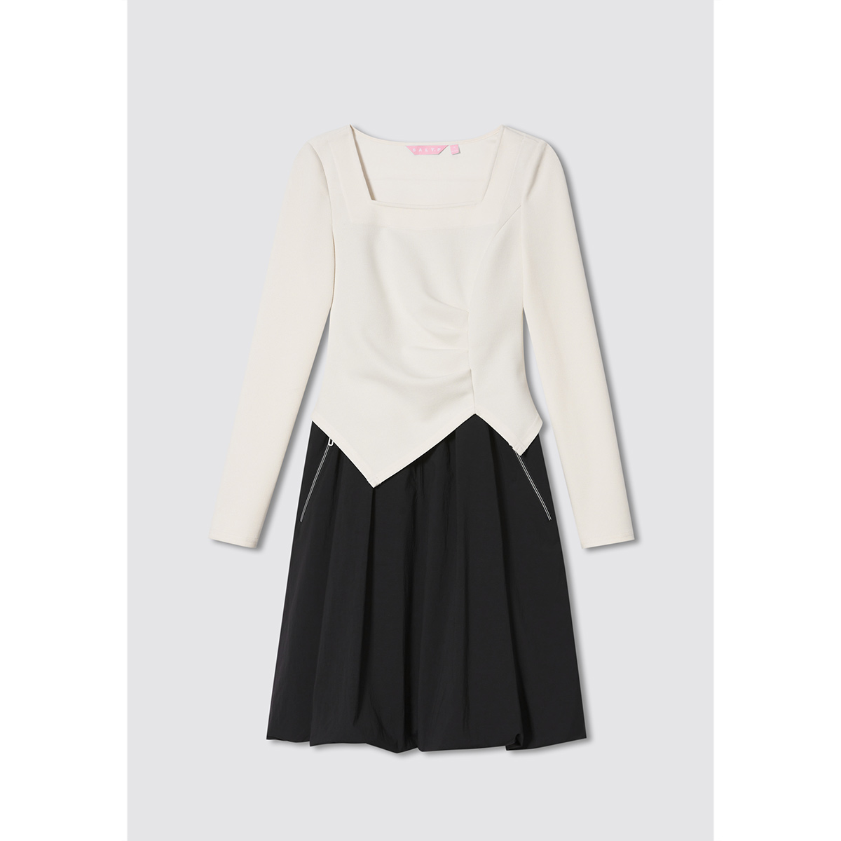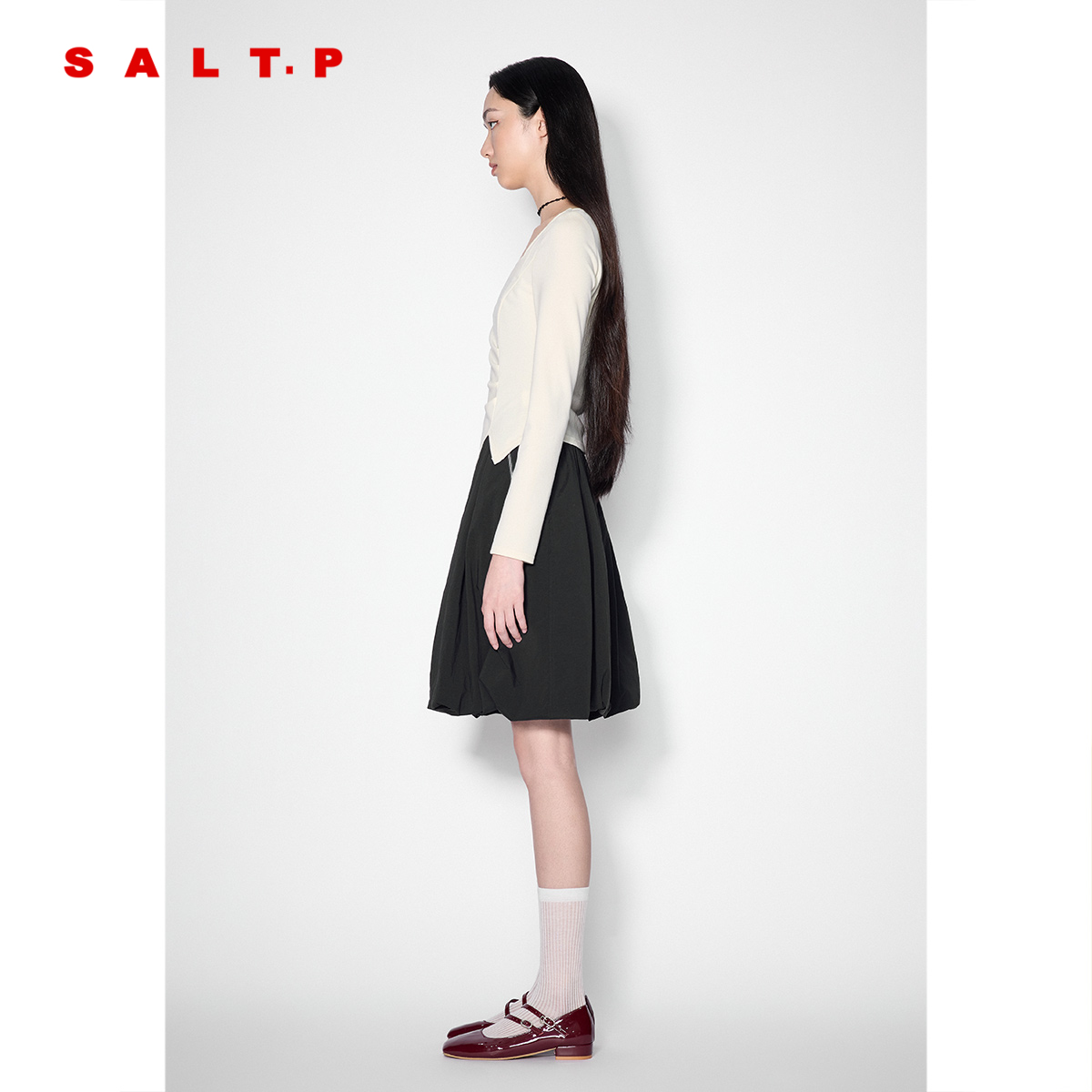 SALT.P可颜方领收腰上衣吊带花苞连衣裙黑白撞色两件套2024秋