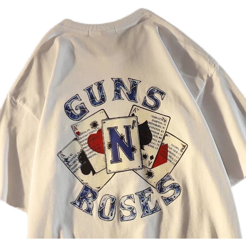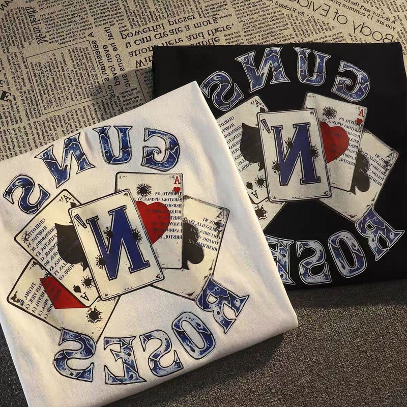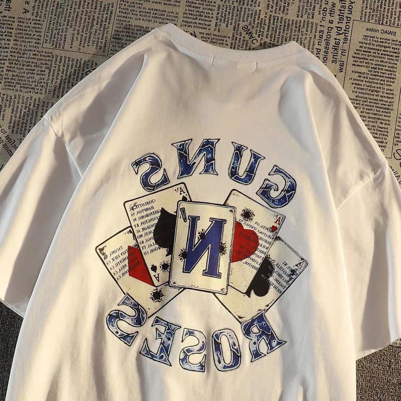 100%纯棉美式潮牌扑克印花短袖t恤男女夏季ins嘻哈复古体恤情侣装