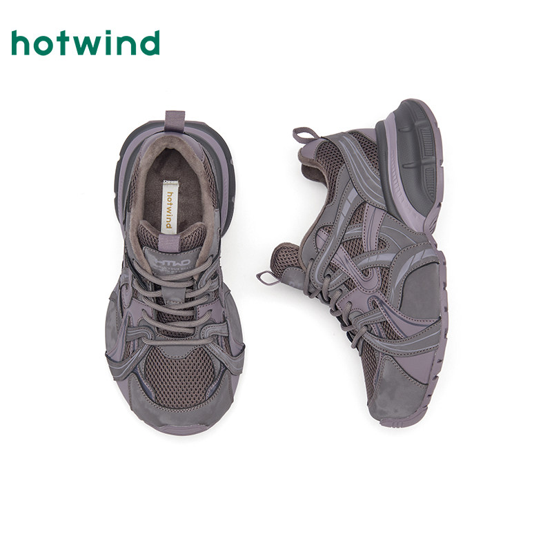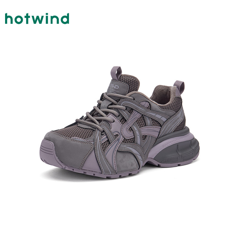 热风加绒运动休闲鞋2025年冬季新款厚底增高老爹鞋紫色女鞋子棉鞋