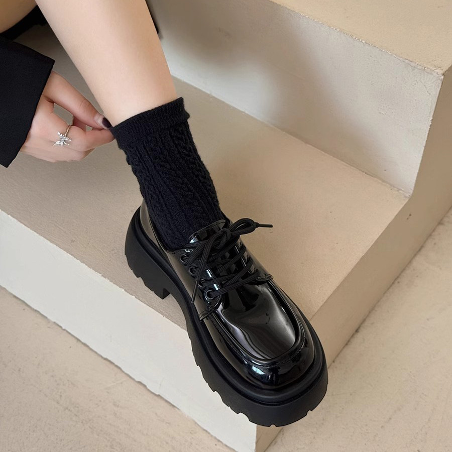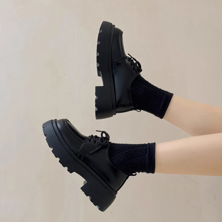 英伦风厚底小皮鞋女2024春秋季新款玛丽珍百搭松糕系带黑色jk单鞋