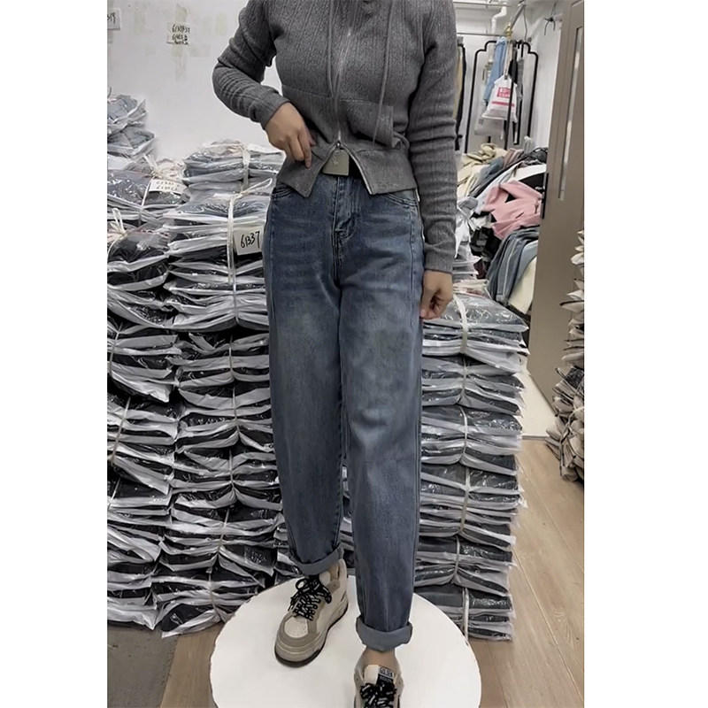 2025春季新款大码工装牛仔老爹裤显瘦减龄哈伦裤小个子遮肉奶奶裤