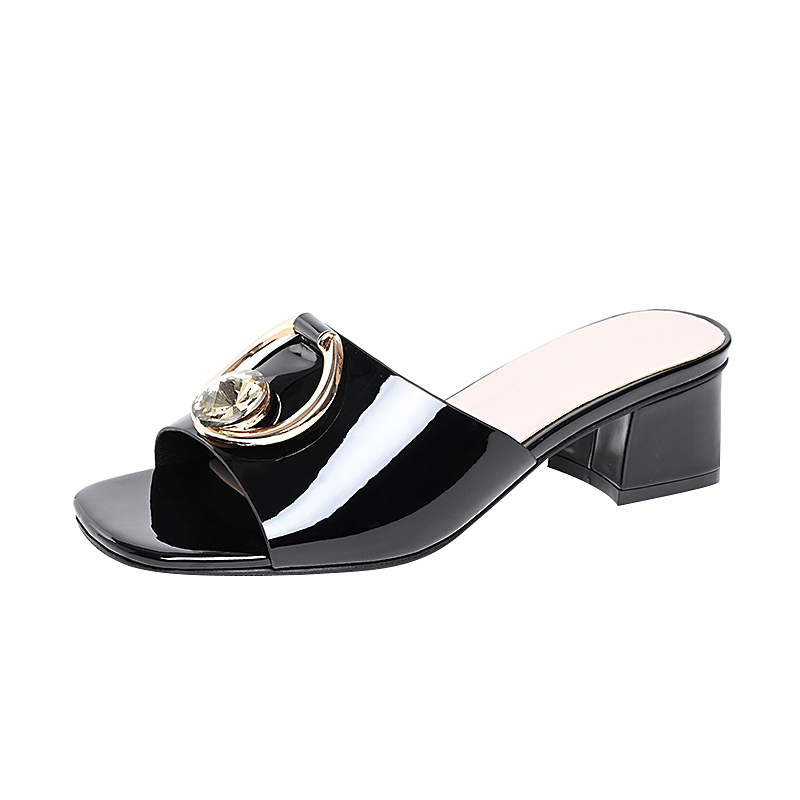 2025款真皮舒适中跟凉拖鞋夏季女士外穿粗跟优雅百搭显瘦一字拖鞋