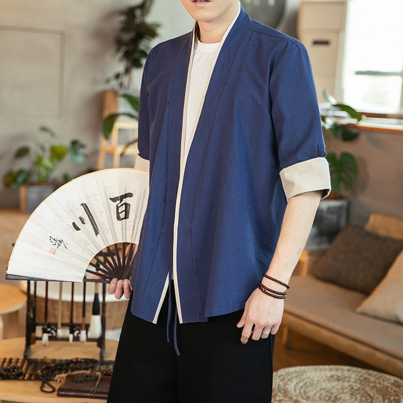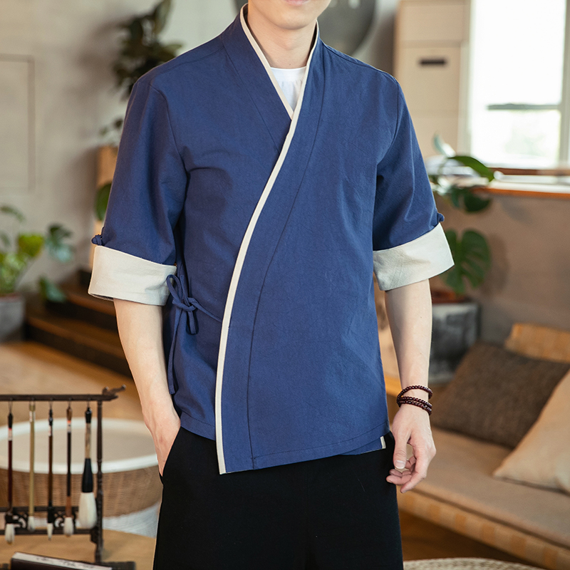 夏季中国风斜襟交领短袖汉服男古风道袍古装禅服居士服民族风男装