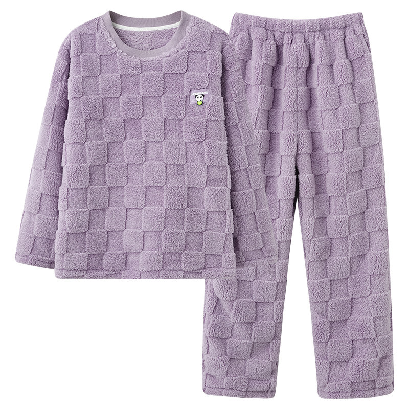 浪莎女士睡衣珊瑚绒长袖圆领套装