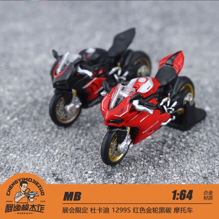 展限MB 1:64 杜卡迪 1299S 红色金轮黑碳 摩托车 合金摩托车模型