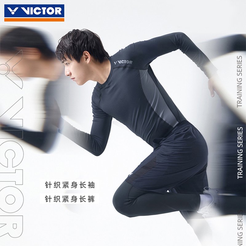 VICTOR胜利羽毛球服威克多男女款针织紧身长袖T-55105长裤P-55808