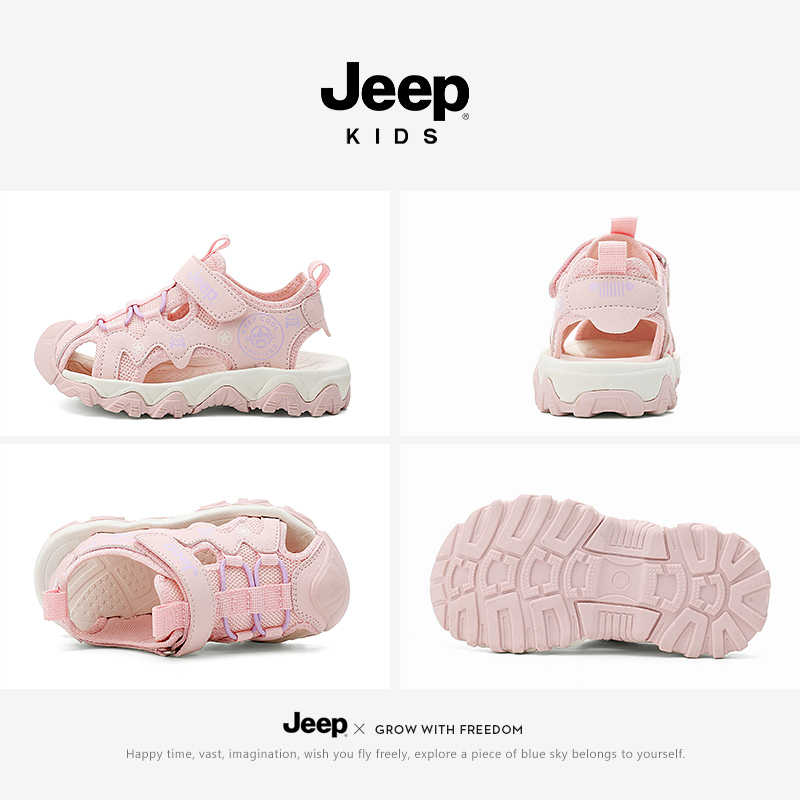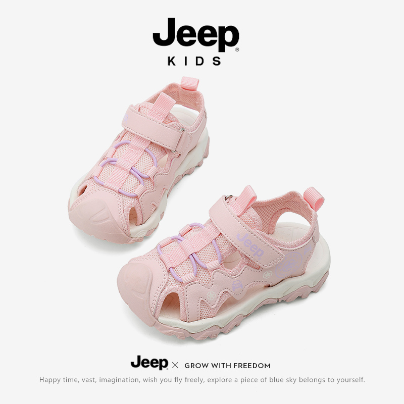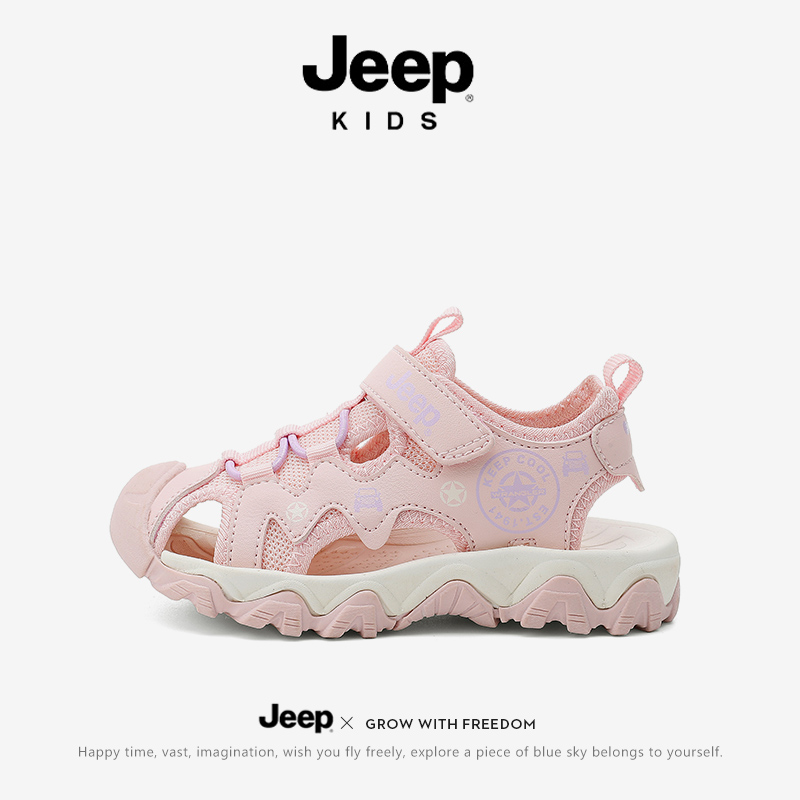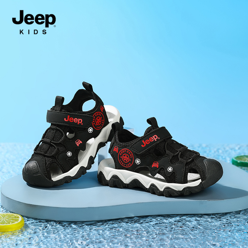 jeep女童凉鞋夏季防滑软底魔术贴童鞋2025新款男童包头透气沙滩鞋