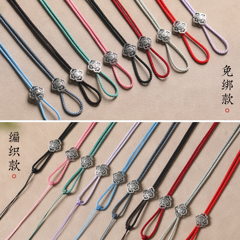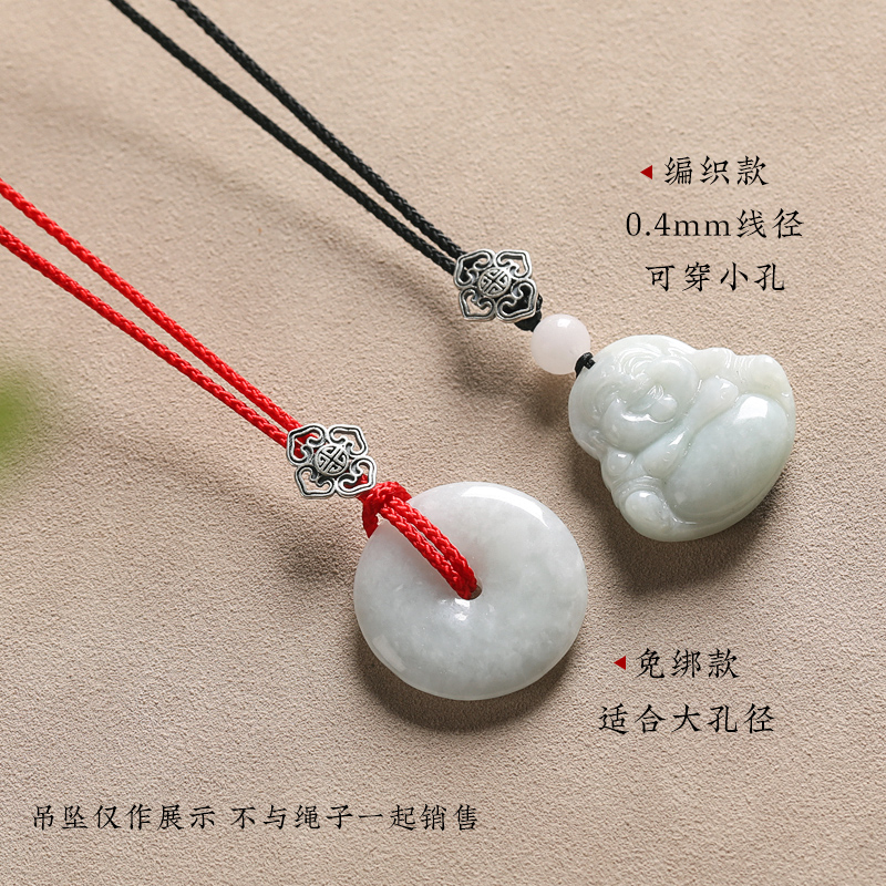 翡翠平安扣吊坠挂绳项链绳子男女纯银高端编织玉石挂件黑红绳挂脖