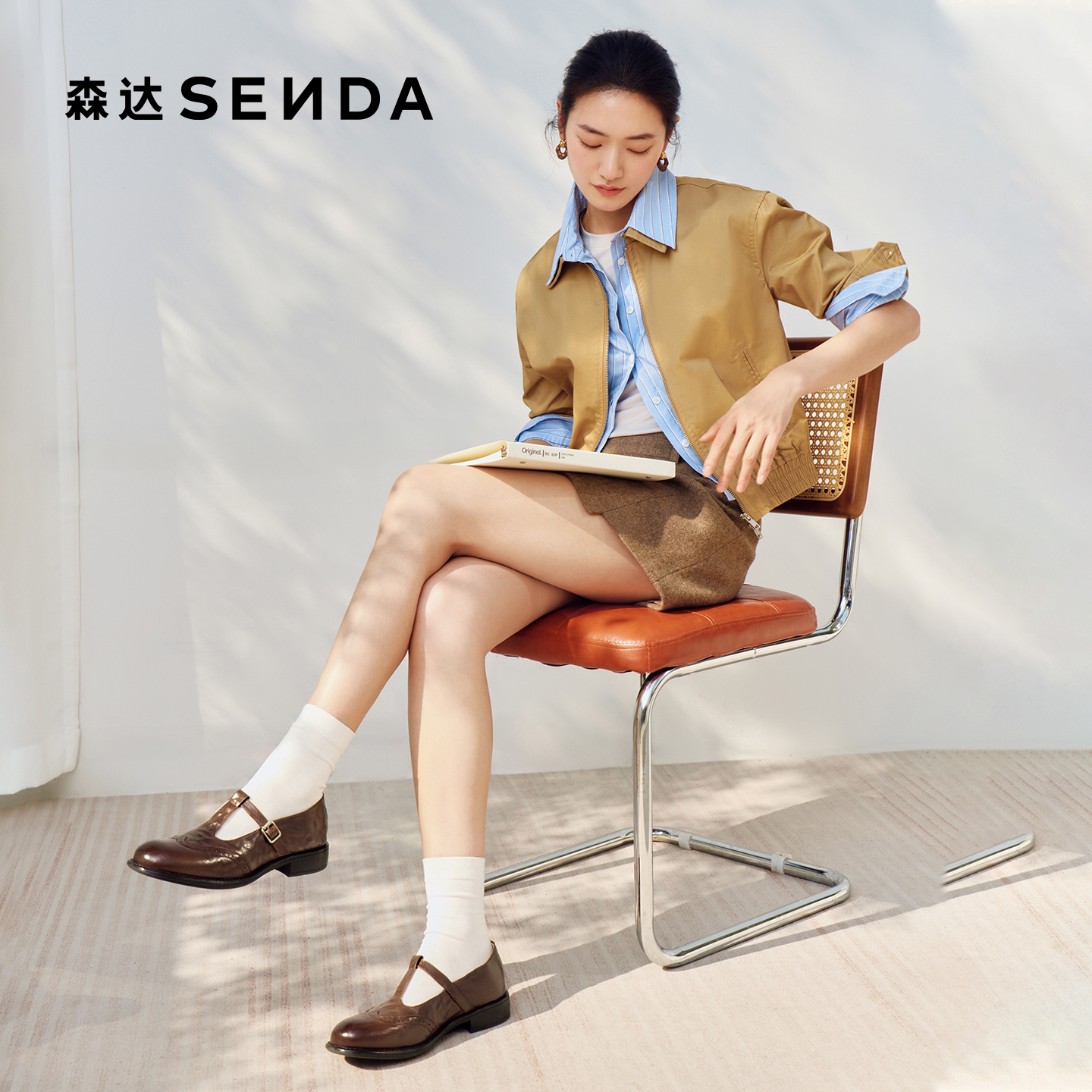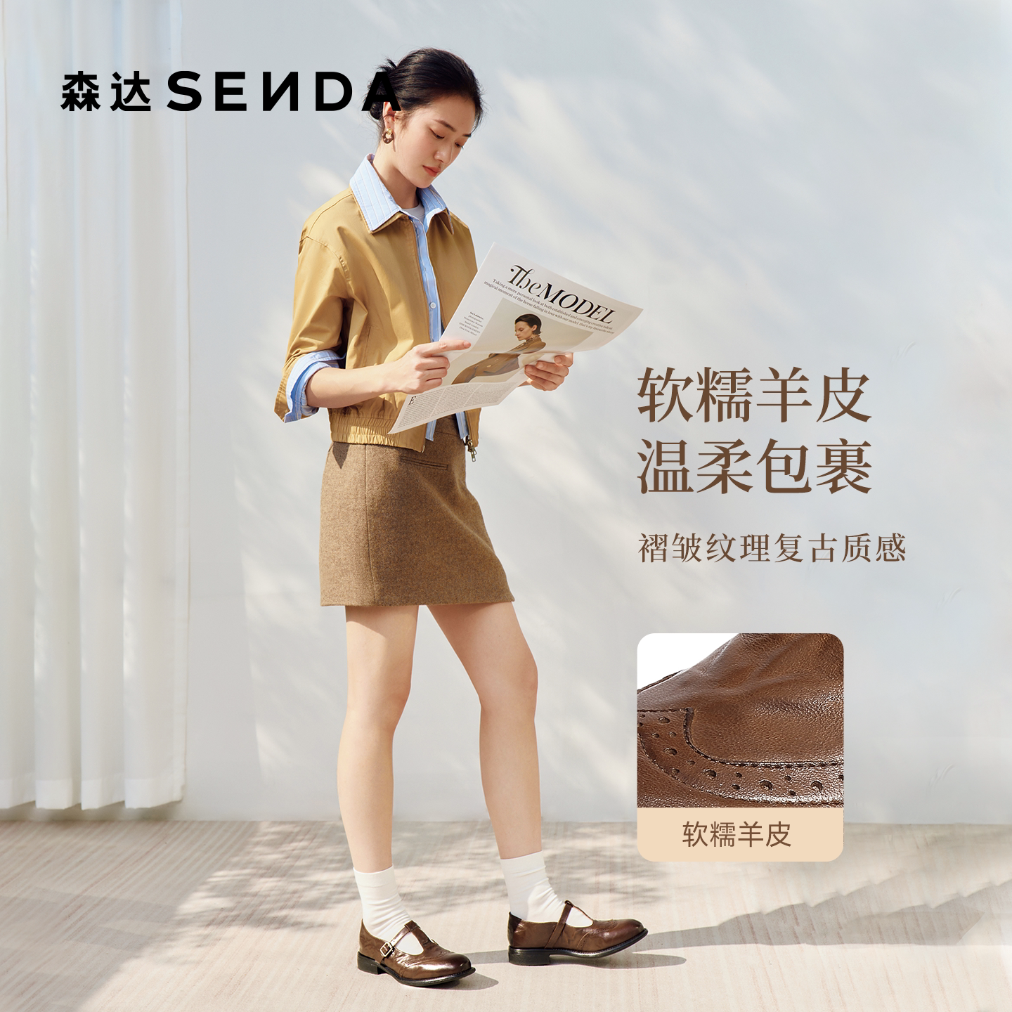 森达玛丽珍女鞋26春新款商场同款软羊皮乐福鞋英伦单鞋皮鞋XXJ01