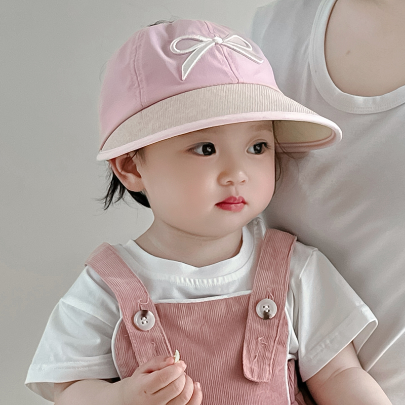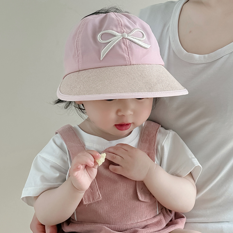 婴儿帽子夏季空顶遮阳大檐防晒帽男女宝宝户外扎马尾可爱太阳帽韩