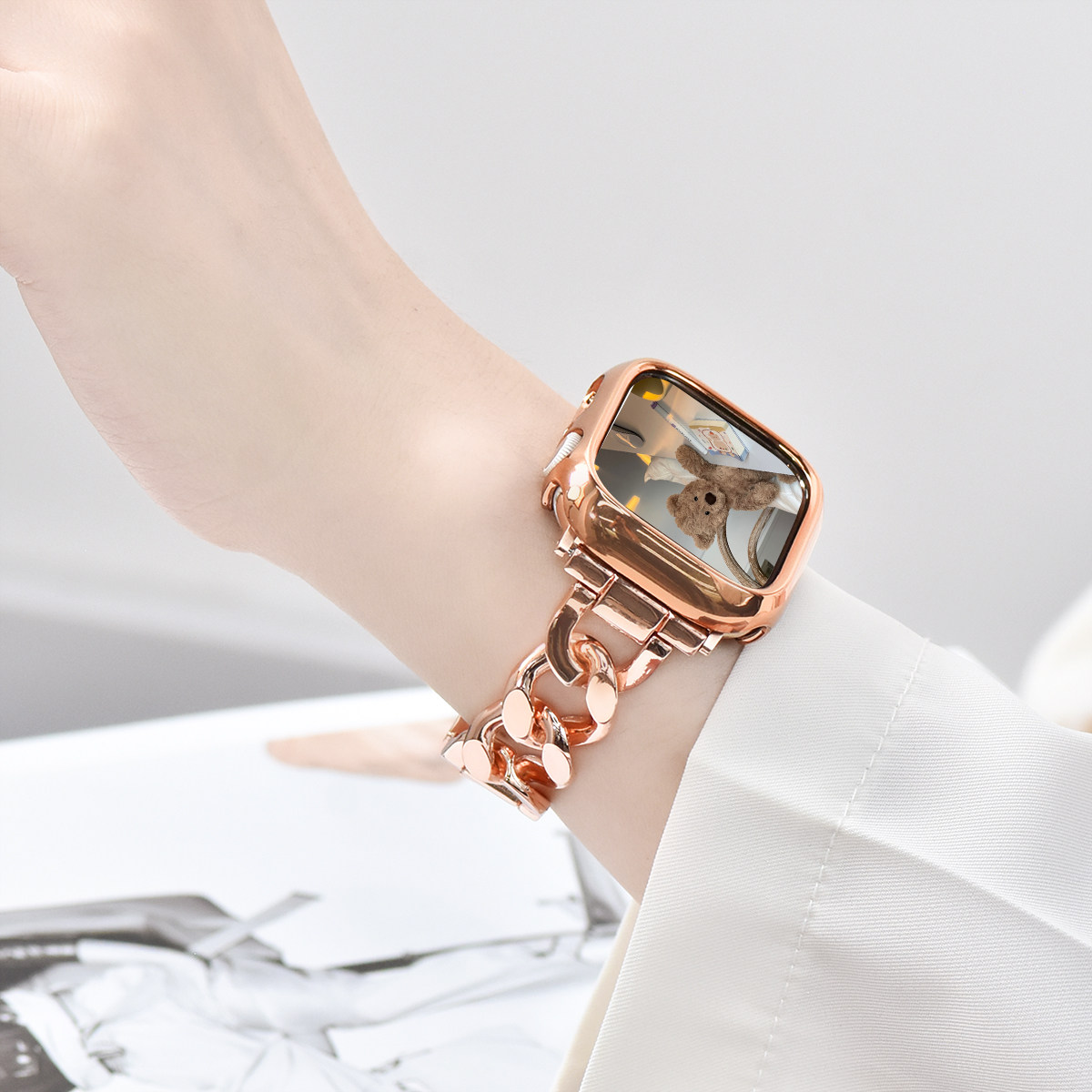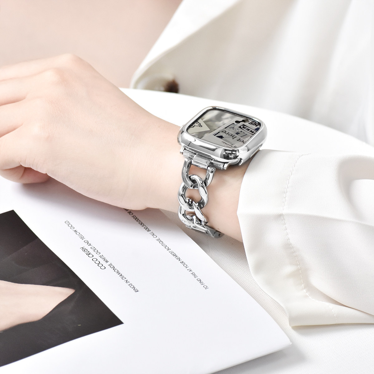 【简约单链】适用applewatch金属链条表带S9/8不锈钢iwatch星光色表带苹果手表se/7/5/5/4/3代气质单链表带女