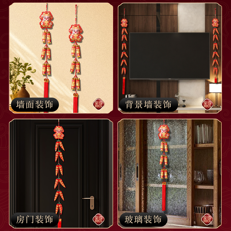 2025新年装饰过年红辣椒串鞭炮挂件春节客厅室内挂饰蛇年新款布置