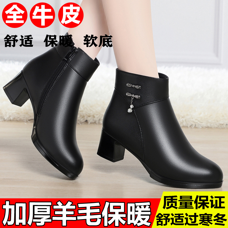 防寒妈妈鞋棉靴冬新款真皮平底妈妈棉鞋女保暖加绒加厚羊毛中老年