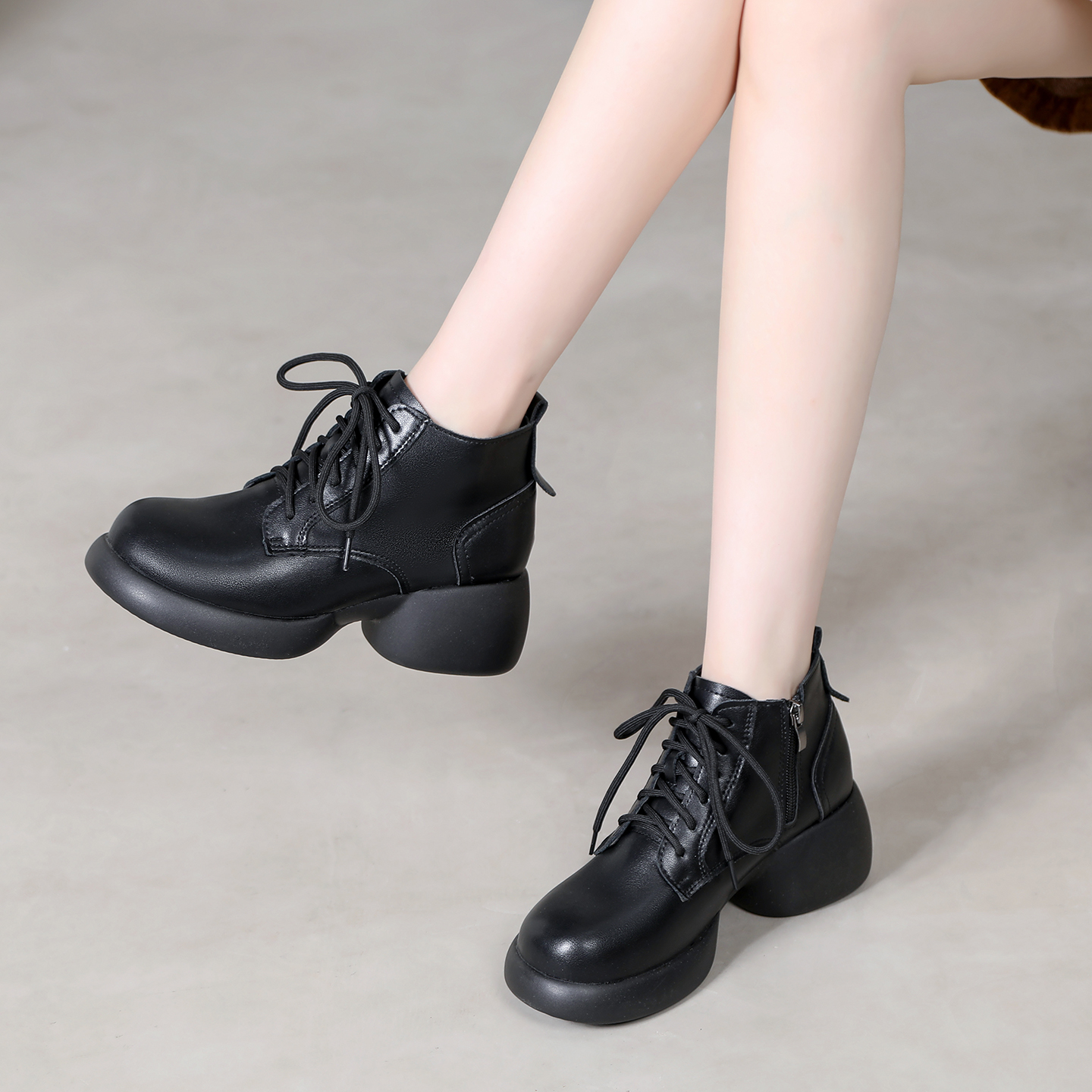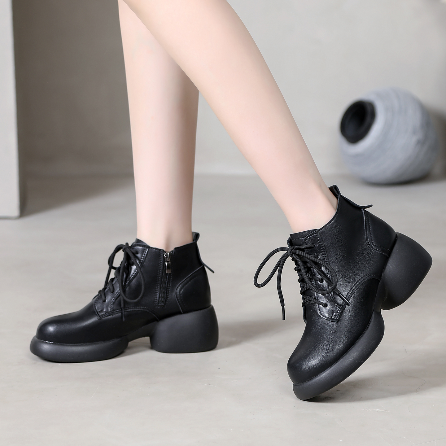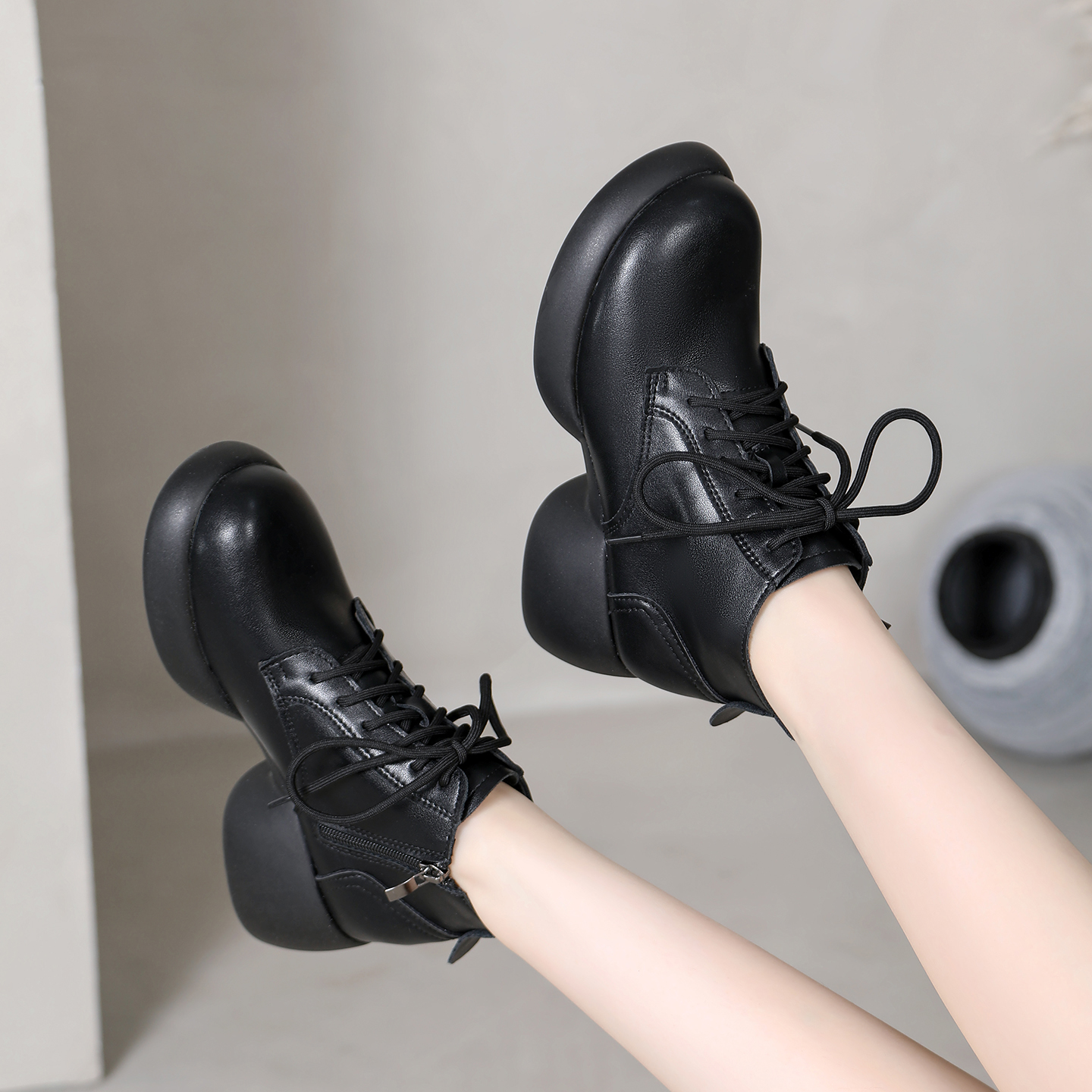 时尚厚底高跟马丁靴女小个子增高短靴洋气百搭粗跟单鞋秋冬新款潮