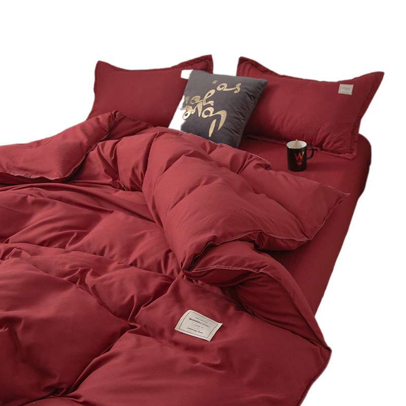 简约纯色粉灰床单四件套日系水洗棉单双人被套学生宿舍床上三件套