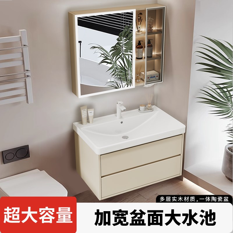 超窄陶瓷一体盆洗漱台小户型洗脸盆组合35cm洗手台盆柜奶油风超薄
