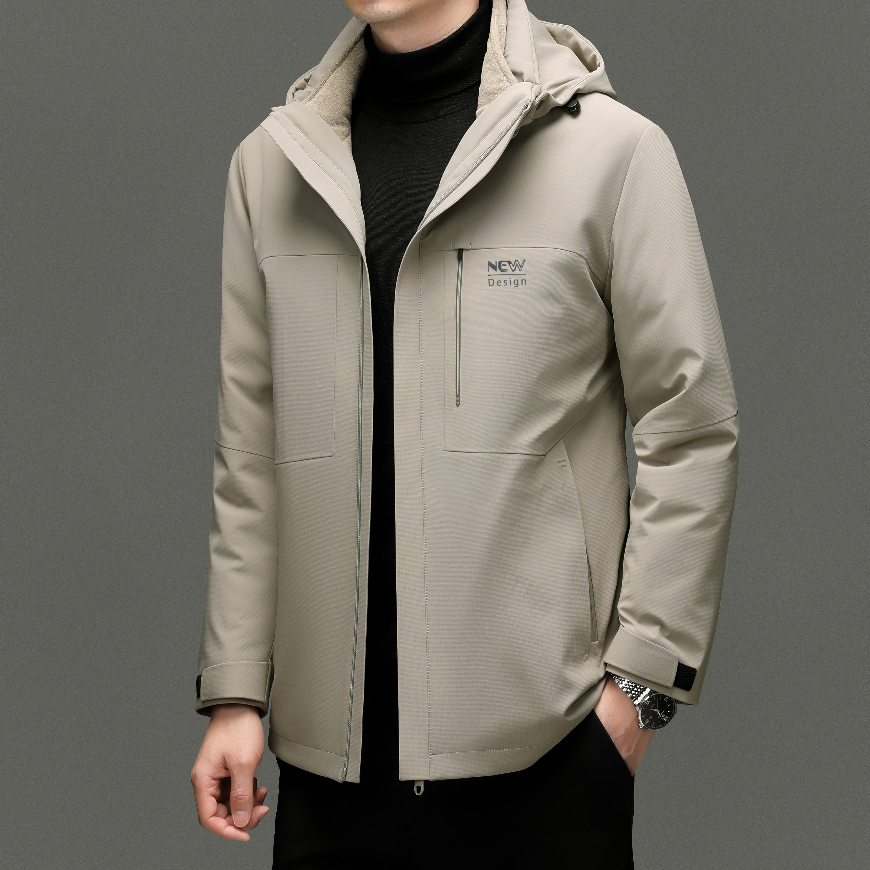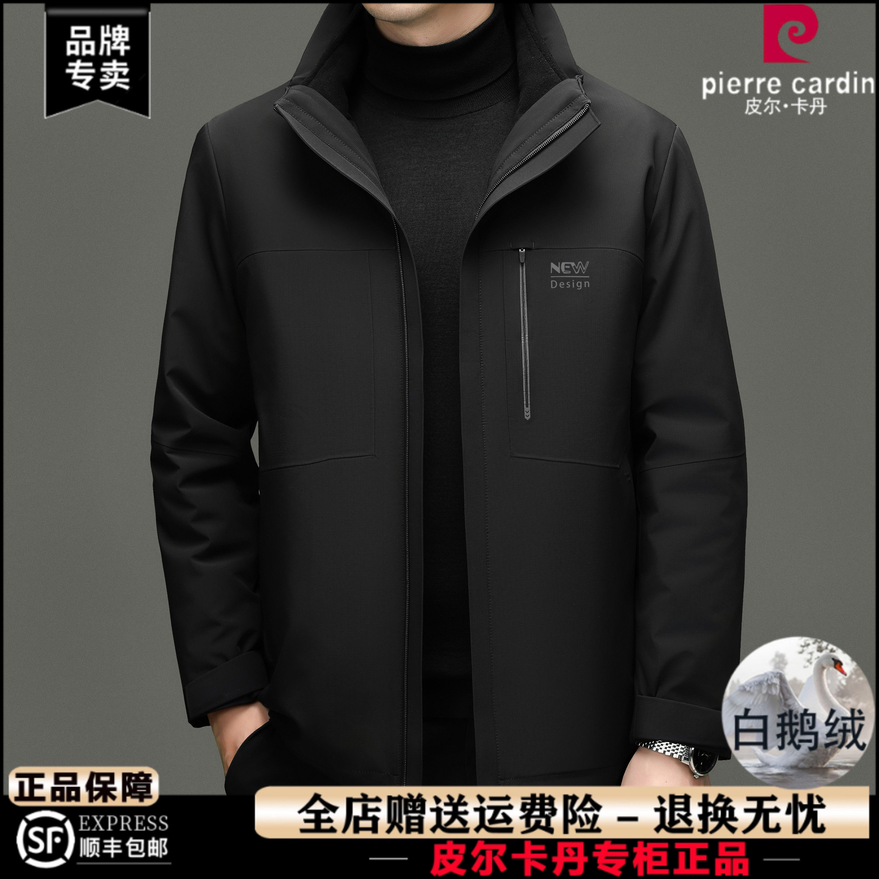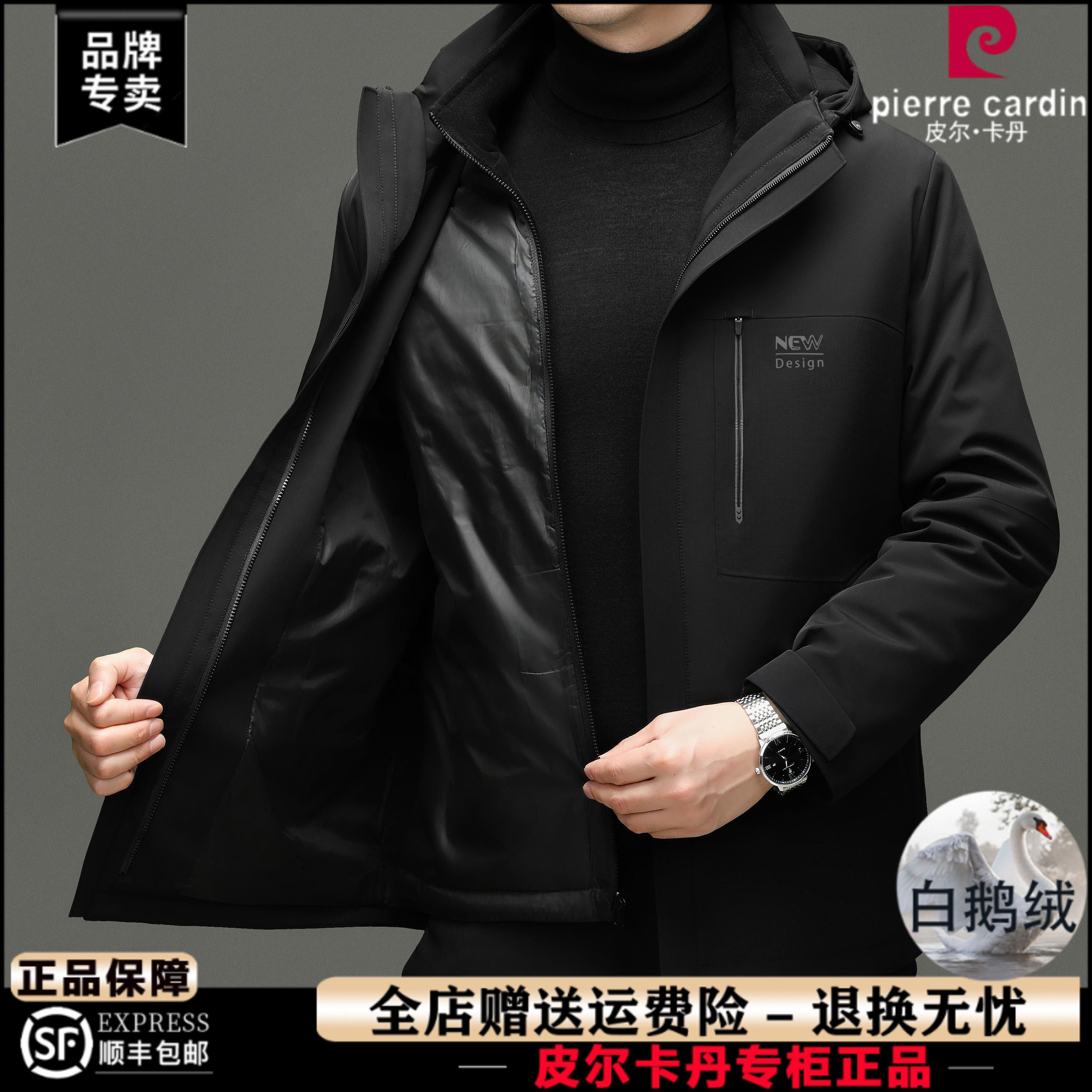 皮尔卡丹90%白鹅绒羽绒服男冬季新款商务休闲可脱卸内胆连帽外套